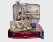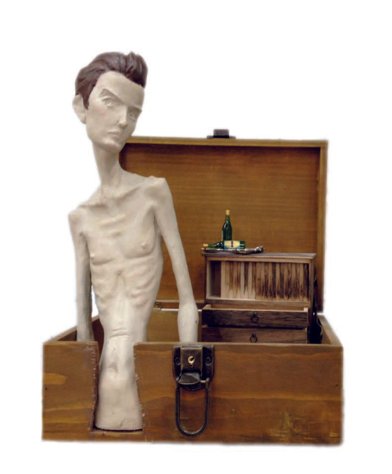 Travel 70-90-60 for the Dream by Jing Yang is a sculptural installation composed of three distinct mixed-media components, unified by themes of memory, introspection, and personal journey. Each piece combines figurative sculpture with constructed environments, often incorporating everyday objects such as wooden boxes or vintage suitcases. The work is deeply narrative and theatrical, inviting viewers into intimate, dreamlike scenes.