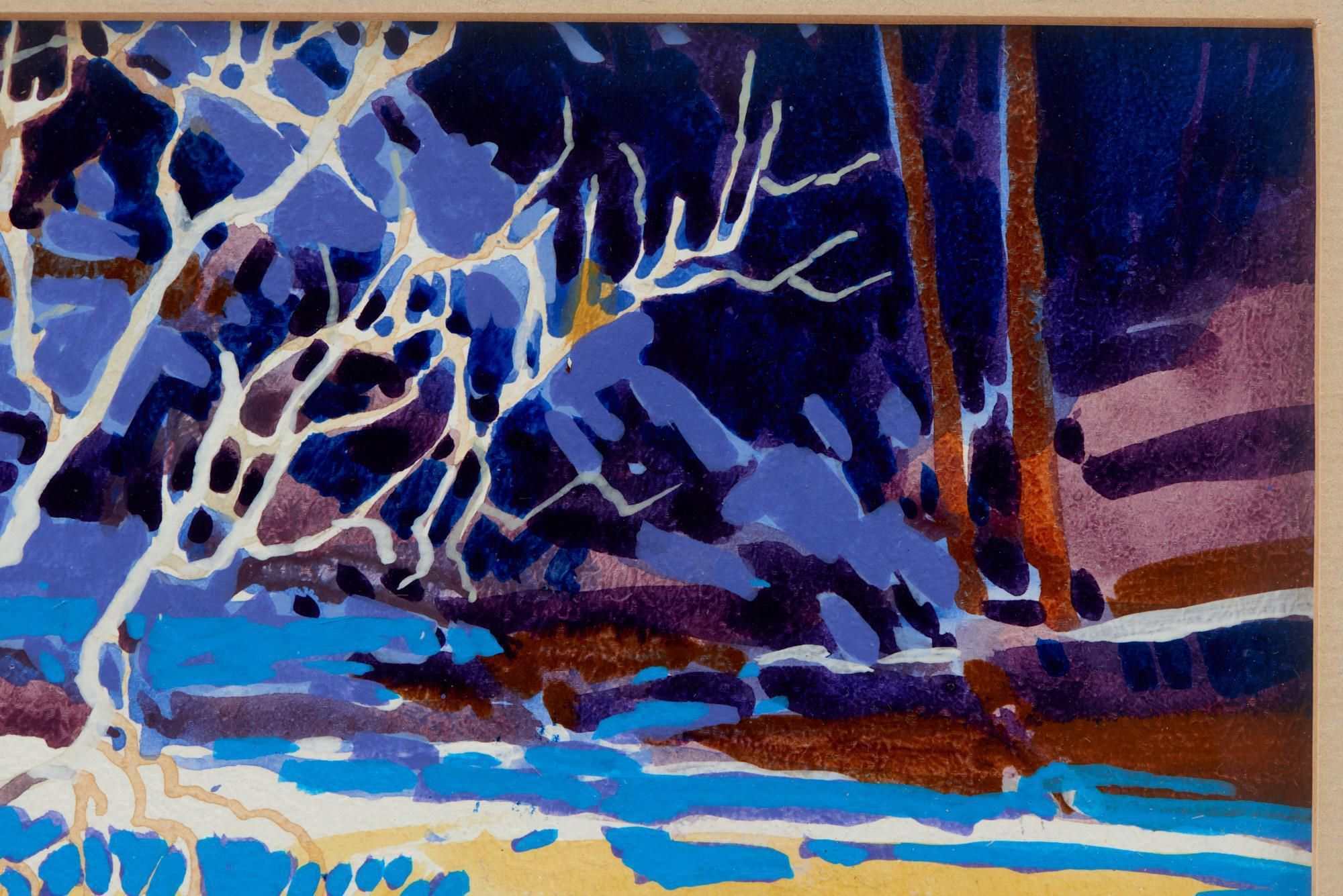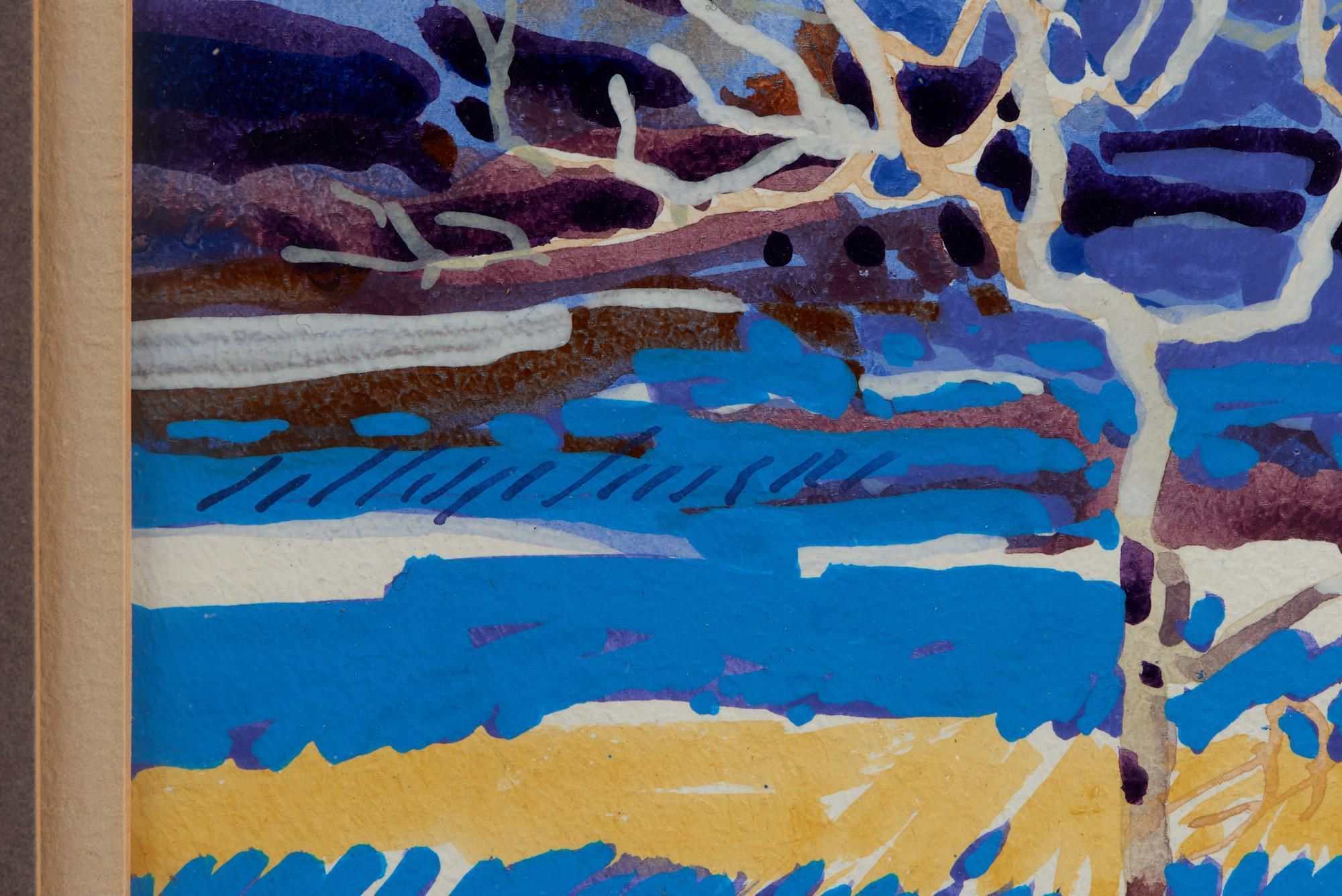 The upper part of the painting reveals a more toned-down palette, showcasing additional details that contribute to the unique visual tapestry. Buffalo Kaplinski's slightly abstracted approach adds a touch of modernity to the traditional subject of landscape painting, offering a fresh perspective on nature's beauty.