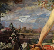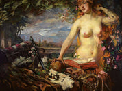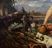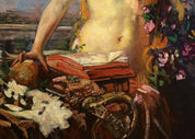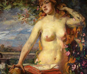 Mangold's artistic prowess shines through in his ability to capture the play of light, texture, and atmosphere, creating a visual narrative that is both engaging and thought-provoking. As you gaze upon "Female Half-Nude with Still Life on a Balcony," you'll be transported to a world where artistry meets imagination, and where every brushstroke contributes to the depth and emotion of the piece.