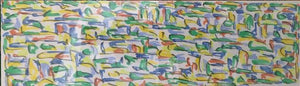 This abstract rendition by Chao Nan captures the artist's impression of the Yangtze River with a dynamic and engaging composition. Loose brushstrokes in juxtaposed hues of green, blue, yellow, and orange create a vivid and textured landscape. The use of dark lines adds a graphic dimension to the watercolour, enhancing the visual depth and complexity. Areas where the support paper shows through contribute to a sense of freshness and textural intricacy.