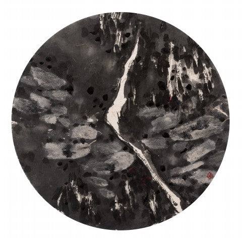 Circular compositions such as this have long held symbolic meaning in Chinese art, representing completeness, harmony, and the infinite. Originating in the Song dynasty as a favored format for fan painting, the yuanban continues to be embraced by contemporary artists like Mo Zhu, who use it as a vessel for introspection and minimalist beauty.