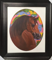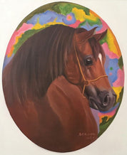 The horse, with its majestic and untamed presence, suggests a symbolic journey through the artist's subconscious, where reality and imagination intersect. The brushwork is deliberate, yet free, allowing the viewer to enter into a world where emotions and thoughts can be translated through the symbolism of the horse.