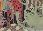 This Untitled 2010 print by the Taiwanese artist duo LIN Yu-Ching and WEI Hsin-Yu presents a fantastical underwater dreamscape dominated by a large, intricately detailed pink octopus. The composition teems with stylized coral forms, mushroom-like growths, exotic fish, and surreal botanical structures, forming a lush, rhythmic tapestry that evokes both the beauty and complexity of marine ecosystems.