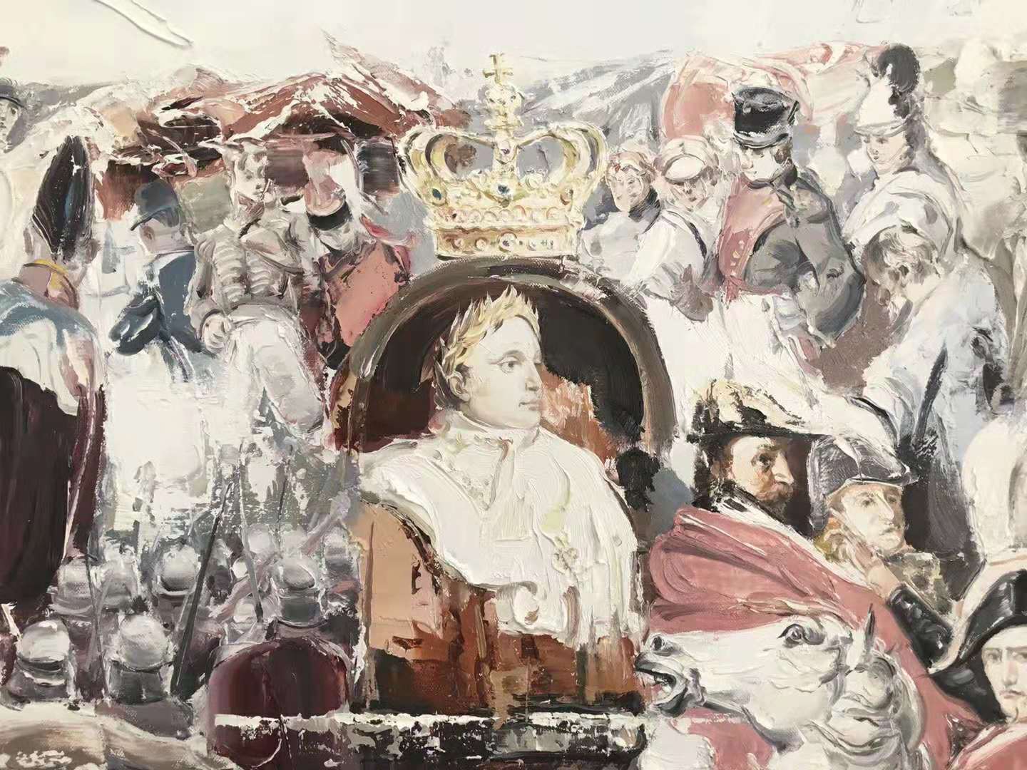 Painted in 2018, the work reflects a moment when Chinese artists were reassessing global narratives of power amid shifting geopolitics. By reconstructing Napoleon’s mythos, Shen interrogates the universal impulse to monumentalize victory—whether in 19th-century Europe or in today’s competing national stories. The frozen sea beneath the arch hints at environmental fragility, a recurrent theme in Shen’s oeuvre that dovetails with worldwide anxieties about climate and empire.
