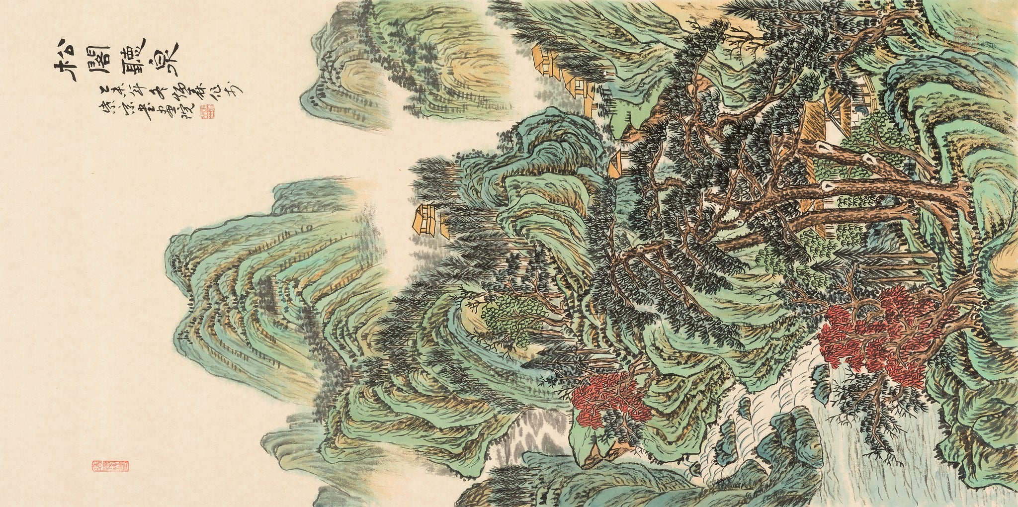 Spring landscapes have long served as symbols of renewal and vitality in Chinese painting, embodying both the cycles of nature and human emotion. In the cultural context of guohua painting, scenes like those in Songko Listen to Spring offer more than just visual representation—they serve as spaces of imagined retreat, places where one might hear the “sound” of spring through the rustle of trees, the trickle of water, and the solitude of mountain dwellings. This thematic emphasis reflects the traditional literati pursuit of harmony with nature as a form of personal cultivation.