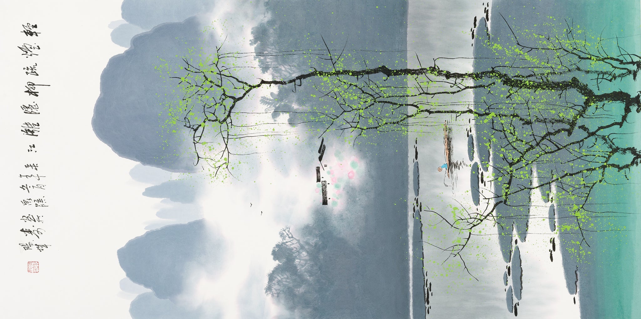The Li River has long served as a subject of inspiration in Chinese art and literature, symbolizing tranquility, poetic solitude, and the interconnectedness of nature and the human spirit. Willows, often associated with grace and quiet strength, are frequent emblems in classical poetry and visual art. In capturing this understated moment of landscape, Zhang participates in a lineage of painters who viewed nature not just as scenery, but as a mirror of moral and emotional life.