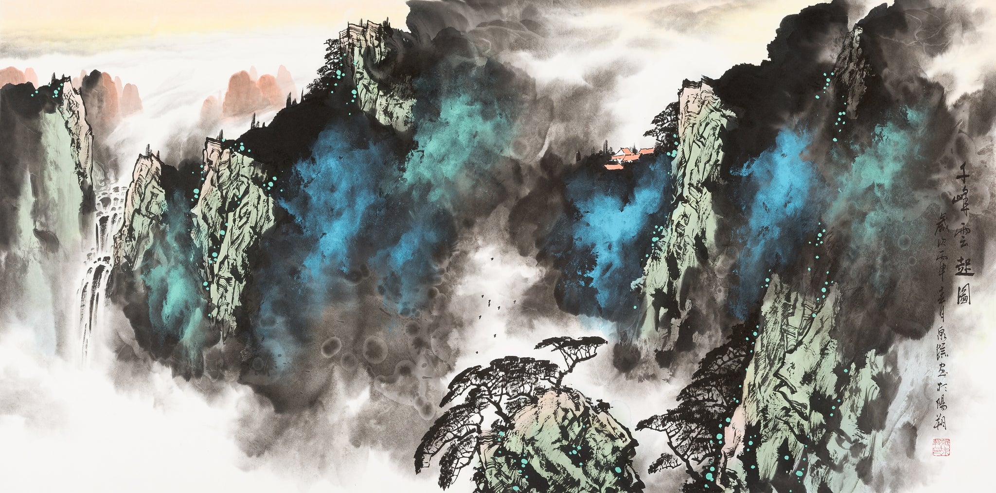 The motif of peaks shrouded in clouds is deeply symbolic in Chinese art and literature, representing the interface between the earthly and the sublime, the visible and the hidden. This imagery aligns with Daoist philosophies of nature’s mystery and impermanence, inviting viewers toward contemplation and spiritual resonance. Zhang’s Thousands of Peak Clouds continues this tradition, situating the work within a rich cultural lineage that celebrates the transcendent power of the natural world.