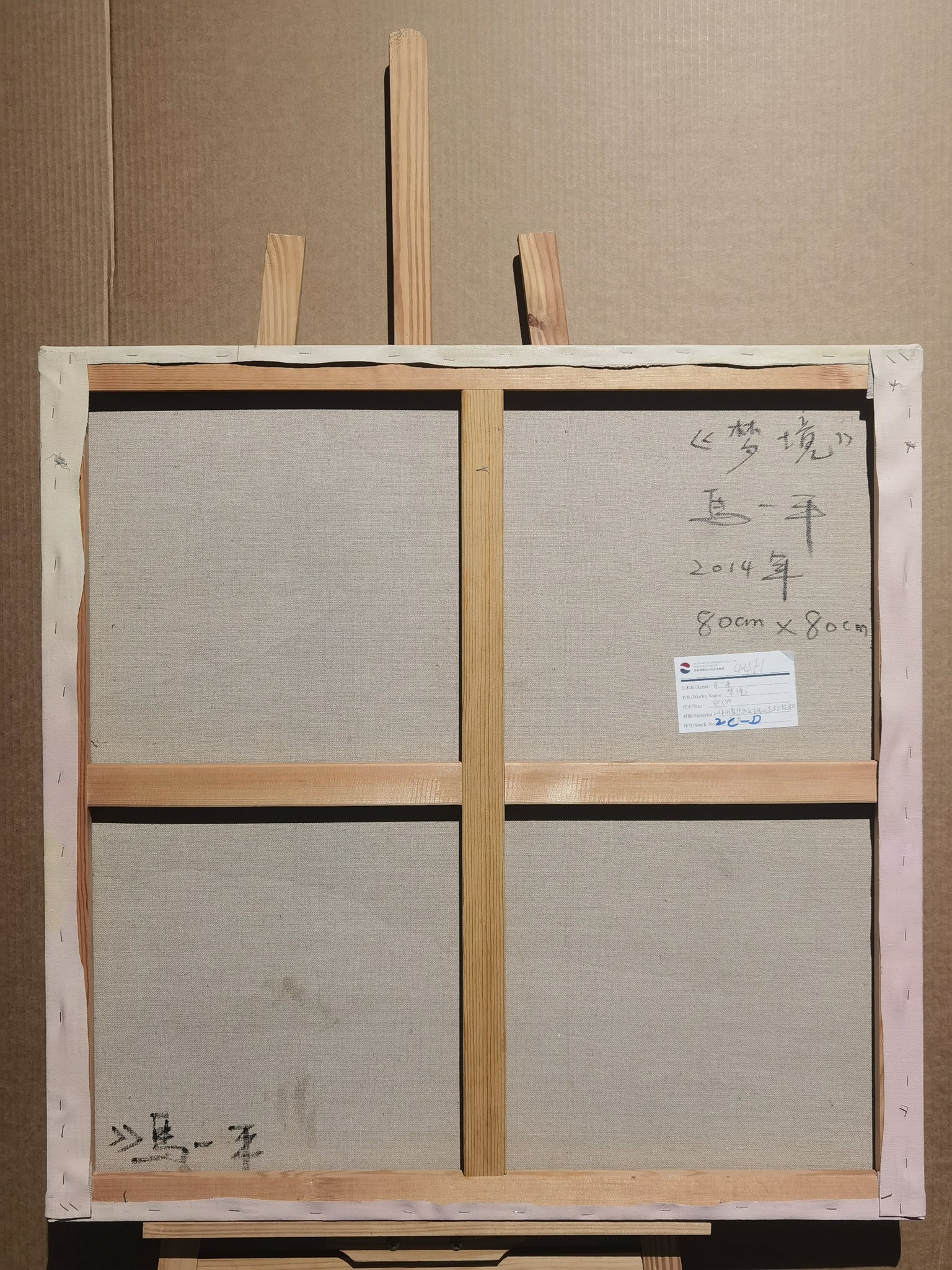 Dreamland by Yiping Ma is a large-scale Chinese painting measuring 80 by 80 centimeters (31.5 by 31.5 inches). The composition immerses the viewer in an ethereal landscape bathed in soft pink and sunset hues. The artist employs delicate brushwork and subtle color gradations to evoke a tranquil, dreamlike atmosphere reminiscent of twilight’s quiet magic.