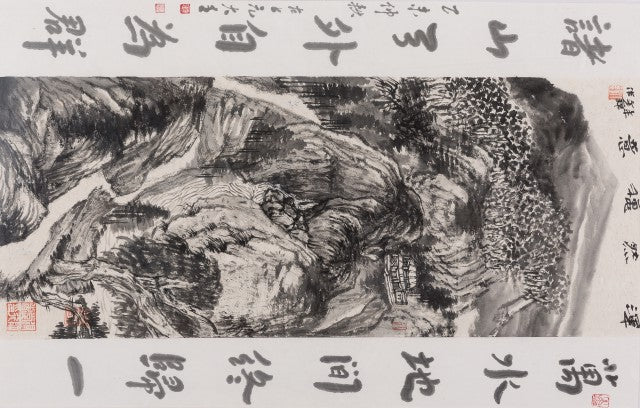 All Things Are Equal by Wenjin Sheng is a Chinese painting measuring 41 by 46 centimeters (16.1 by 18.1 inches). The composition depicts an uphill landscape rendered with delicate brushwork and nuanced ink washes. The scene’s gentle slopes and layered terrain evoke a serene, contemplative atmosphere, emphasizing the natural world’s harmonious balance.