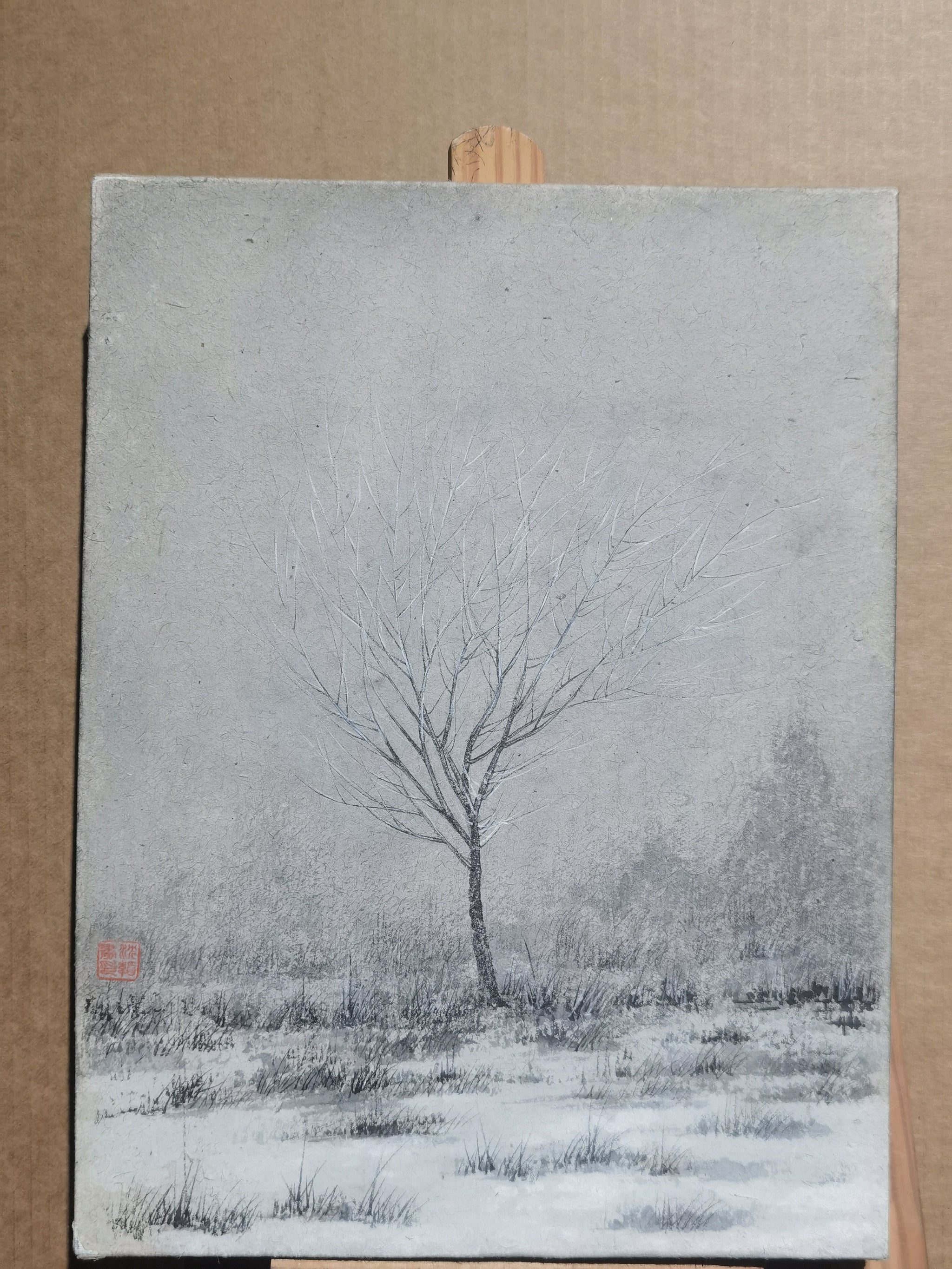 Winter landscapes in Chinese art often serve as metaphors for resilience, solitude, and philosophical clarity. Lifeless trees in snow are emblematic of the cycles of nature and the inner strength found in adversity—frequent themes in classical painting and poetry. This work engages with that tradition while presenting a modern visual sensibility.