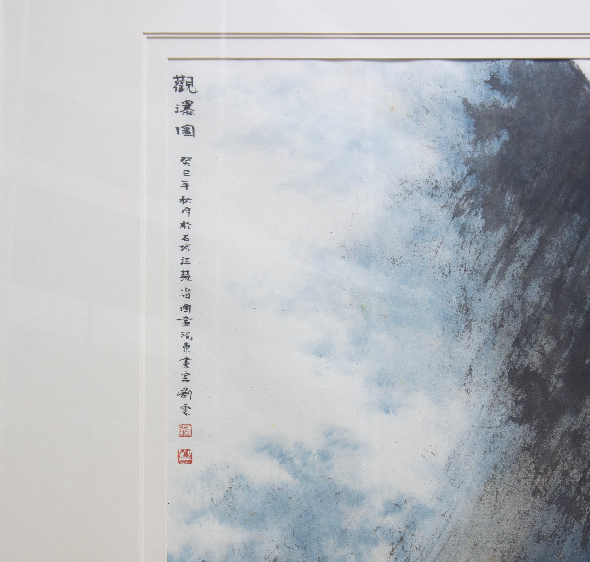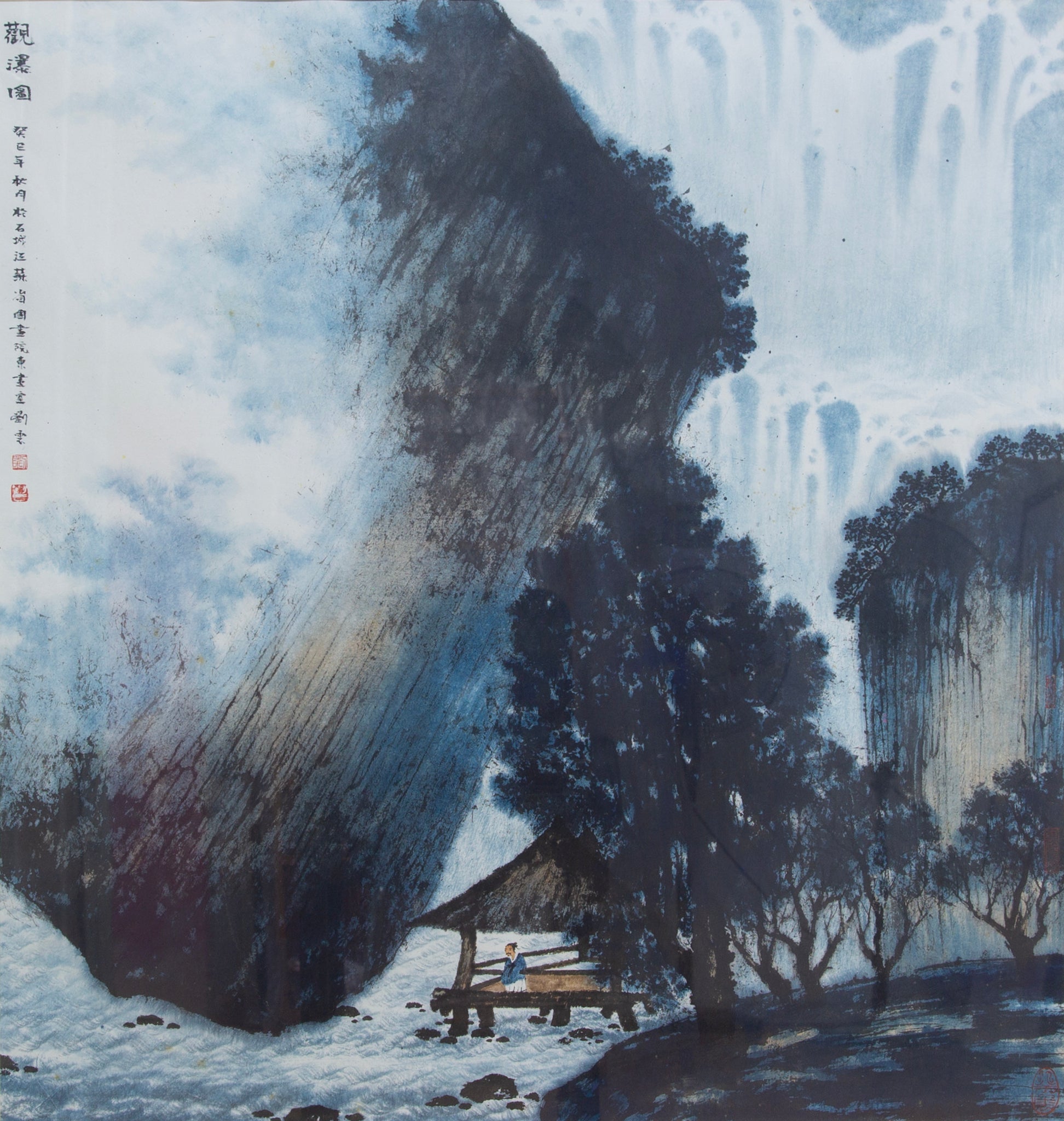 Viewing Waterfall Diagram reflects Liu Yun's enduring fascination with the intersection of landscape, human reflection, and emotional resonance. The waterfall—simultaneously overpowering and serene—becomes a metaphor for inner contemplation and nature’s omnipotence. As one of Liu’s most evocative compositions, it exemplifies his capacity to transform natural forms into spiritual experiences, solidifying his legacy in the canon of Asian Modern & Contemporary art.