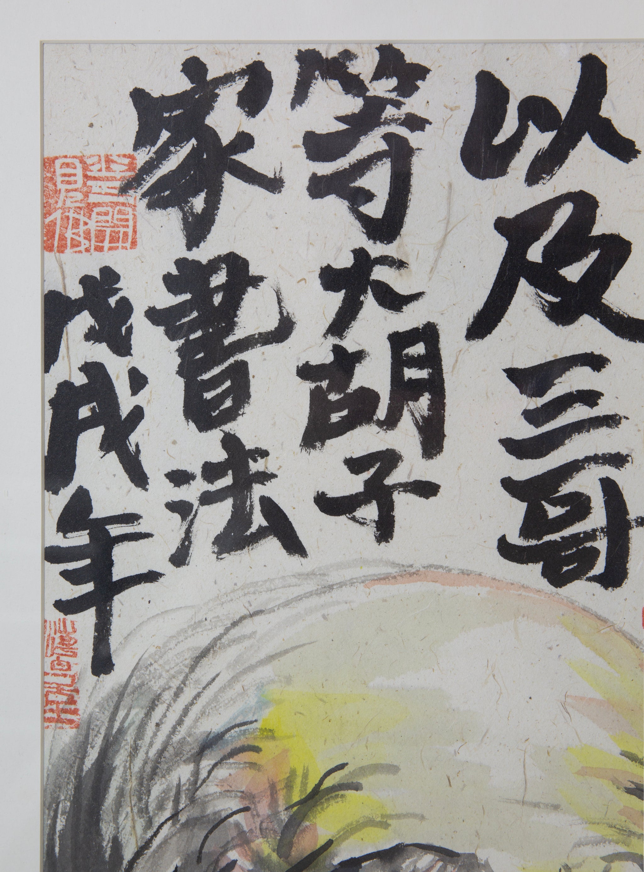 The artwork is in very good condition. The paper surface shows no signs of foxing, creases, or fading. Framed behind protective glass with a wide white mat, the presentation supports long-term preservation and display.