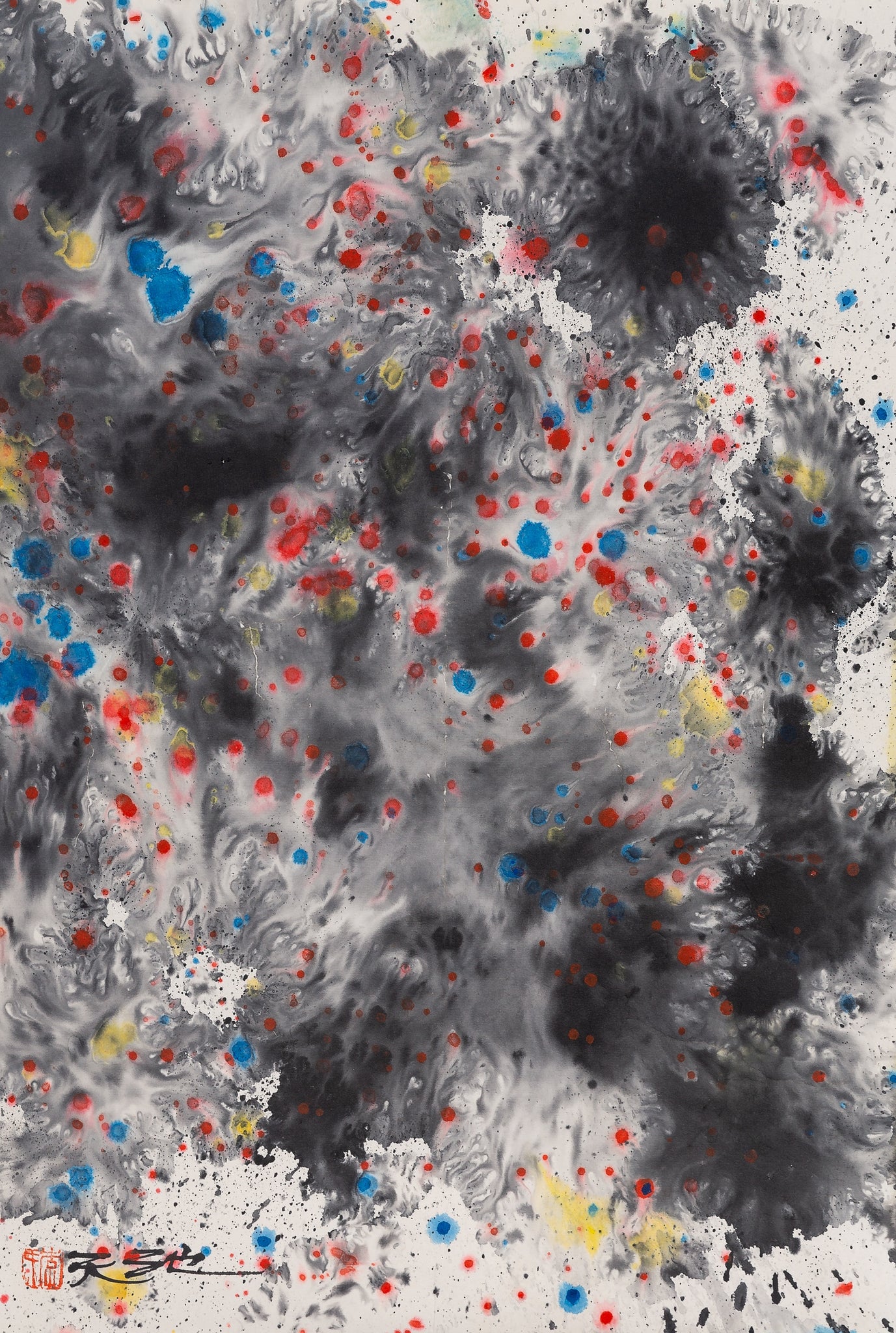 Li Tianchi fuses modern abstraction with the traditional medium of ink and color on paper, pushing the boundaries of form while retaining the essence of spontaneity found in classical Chinese literati painting. The composition may allude to flora and fauna not through literal depiction, but through gestural motion and chromatic rhythm, aligning with contemporary East Asian ink experimentation.