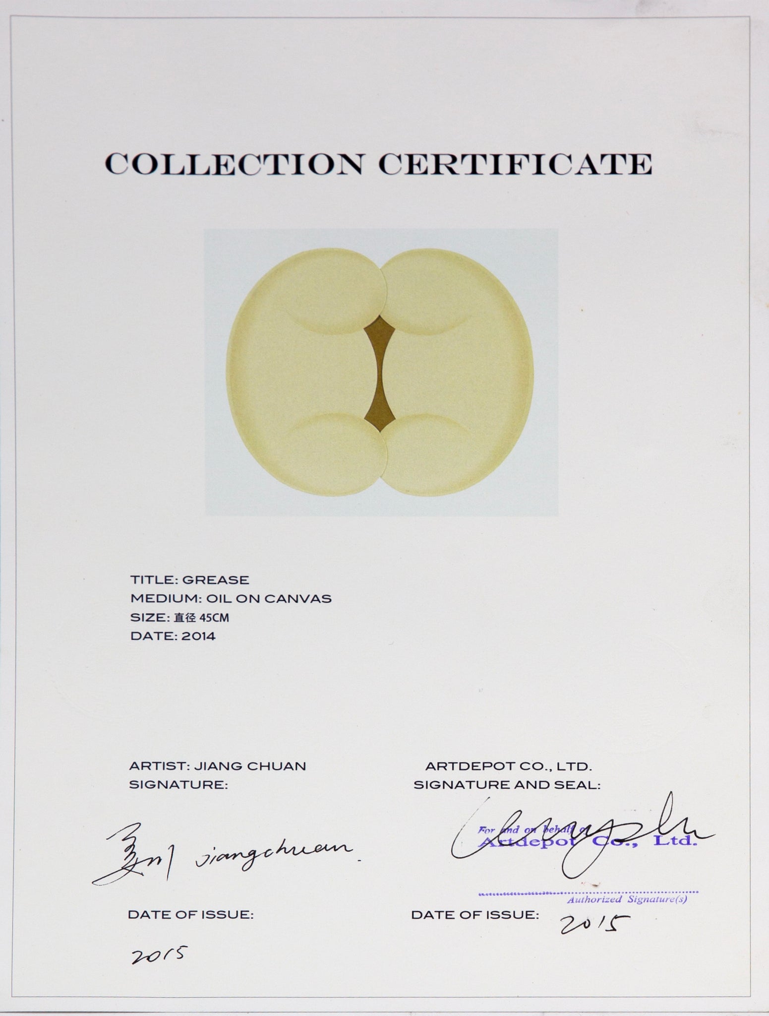 Created during a period of increasing global engagement with Chinese contemporary art, Grease emerges from the artist’s ongoing investigation into perception, cultural hybridity, and the visual language of the modern world. In the 2010s, Jiang Chuan's artistic voice matured amid a broader discourse on identity and globalization, with Grease reflecting the artist’s fusion of Eastern aesthetics and Western conceptual strategies.