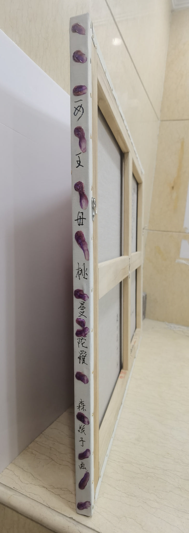 Rooted in the Gutai legacy of material experimentation, Moriuchi’s aesthetic is both sensuous and structured. In Peach of Mount Kunlun 1, her tactile layering and chromatic exuberance reflect the influence of postwar abstraction, but the mandala composition and symbolic color choices evoke a deeply personal cosmology. The peach, often associated with immortality in Chinese mythology and specifically tied to the mythic Mount Kunlun, is reimagined here as a spiritual emblem—a visual portal to vitality, renewal, and transcendence.