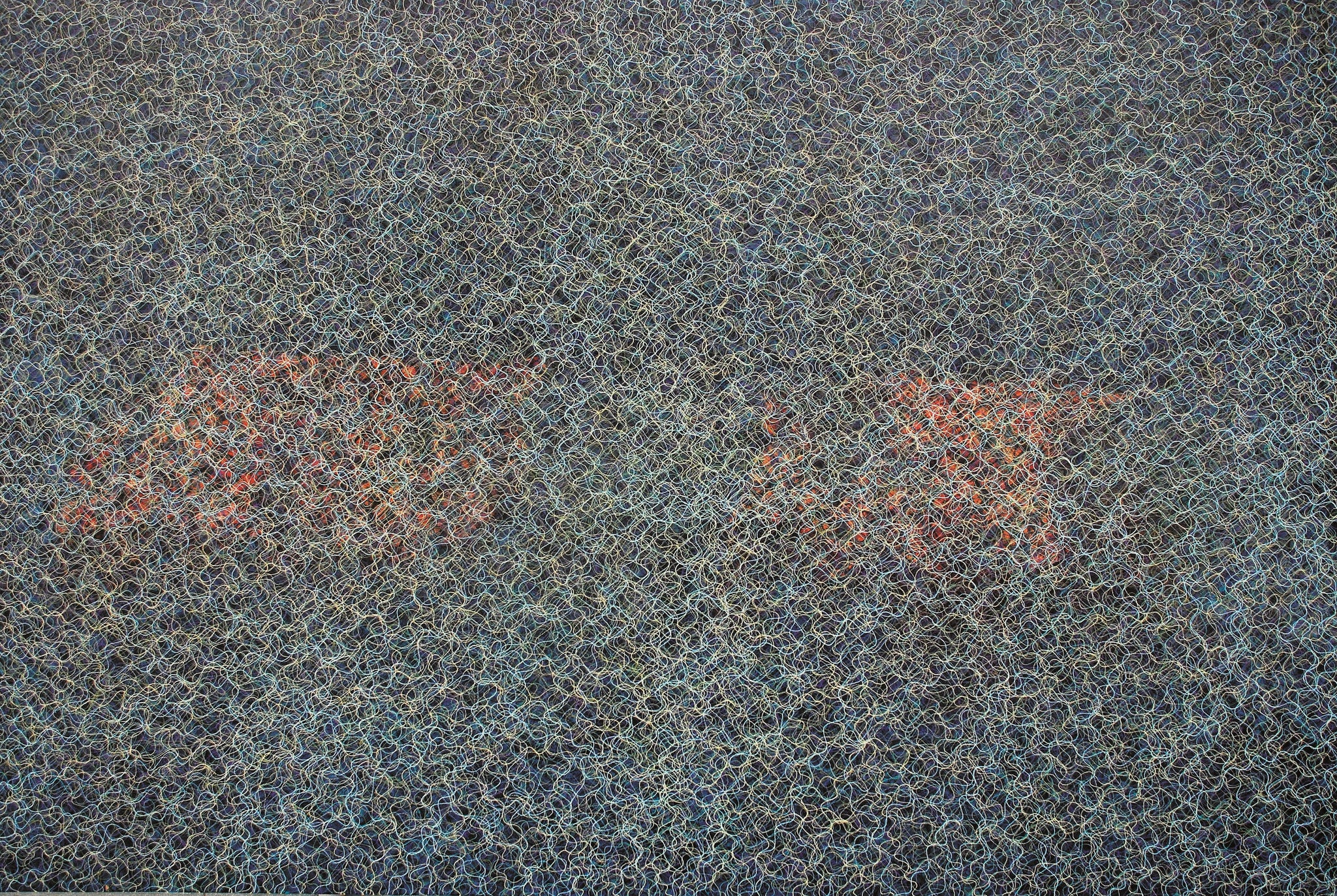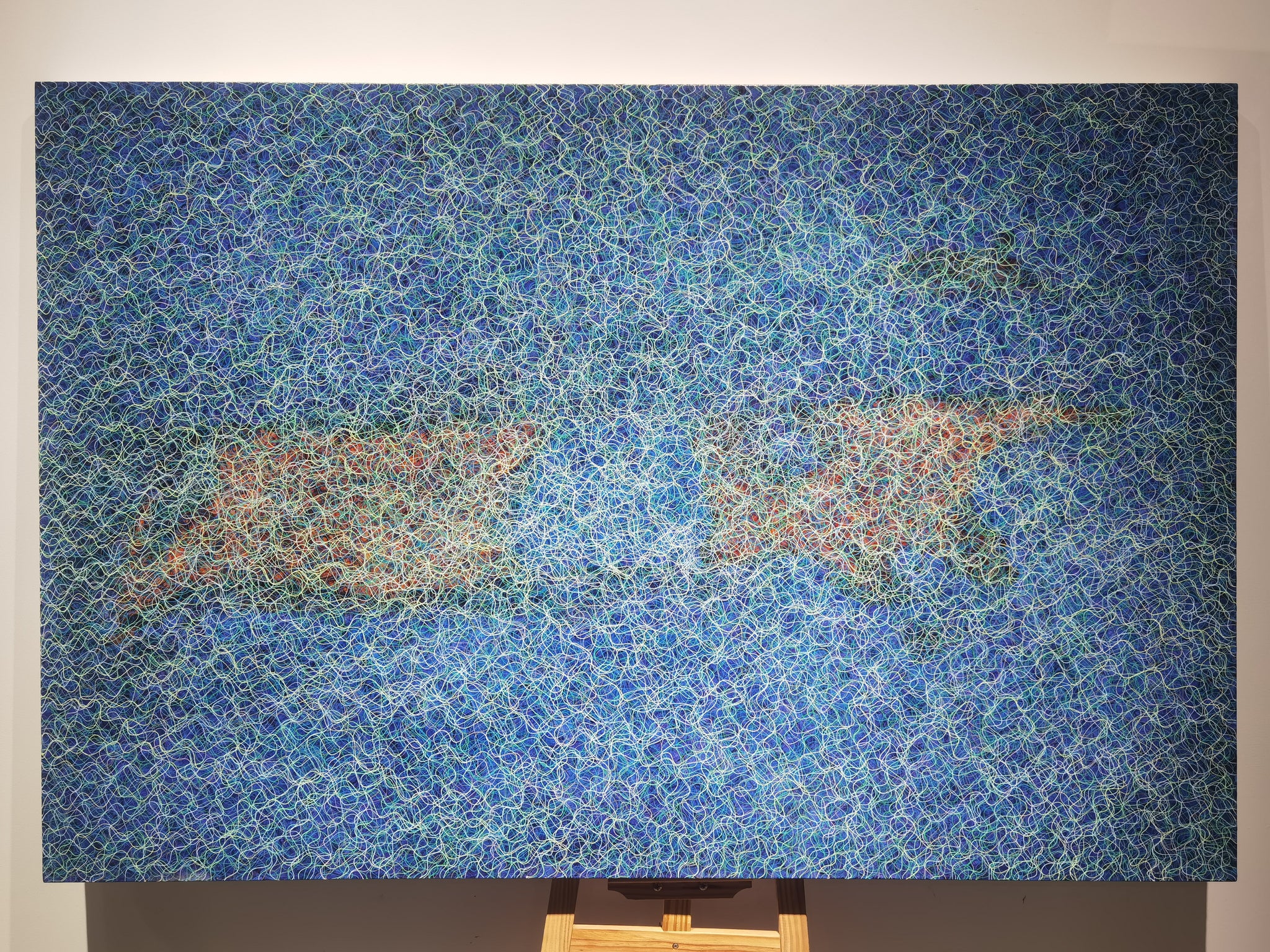 Yi Cheng’s work aligns with contemporary abstraction, bearing traces of both gestural abstraction and pointillism in its intricately accumulated surface. The artist’s technique of repetitive linear loops and entangled brushwork evokes a meditative process reminiscent of Yayoi Kusama’s obsessive dot patterning or the atmospheric density of Mark Tobey’s “white writing.” The resulting effect is a lyrical abstraction that conjures sensations of energy fields, waves, or cellular structures in flux.