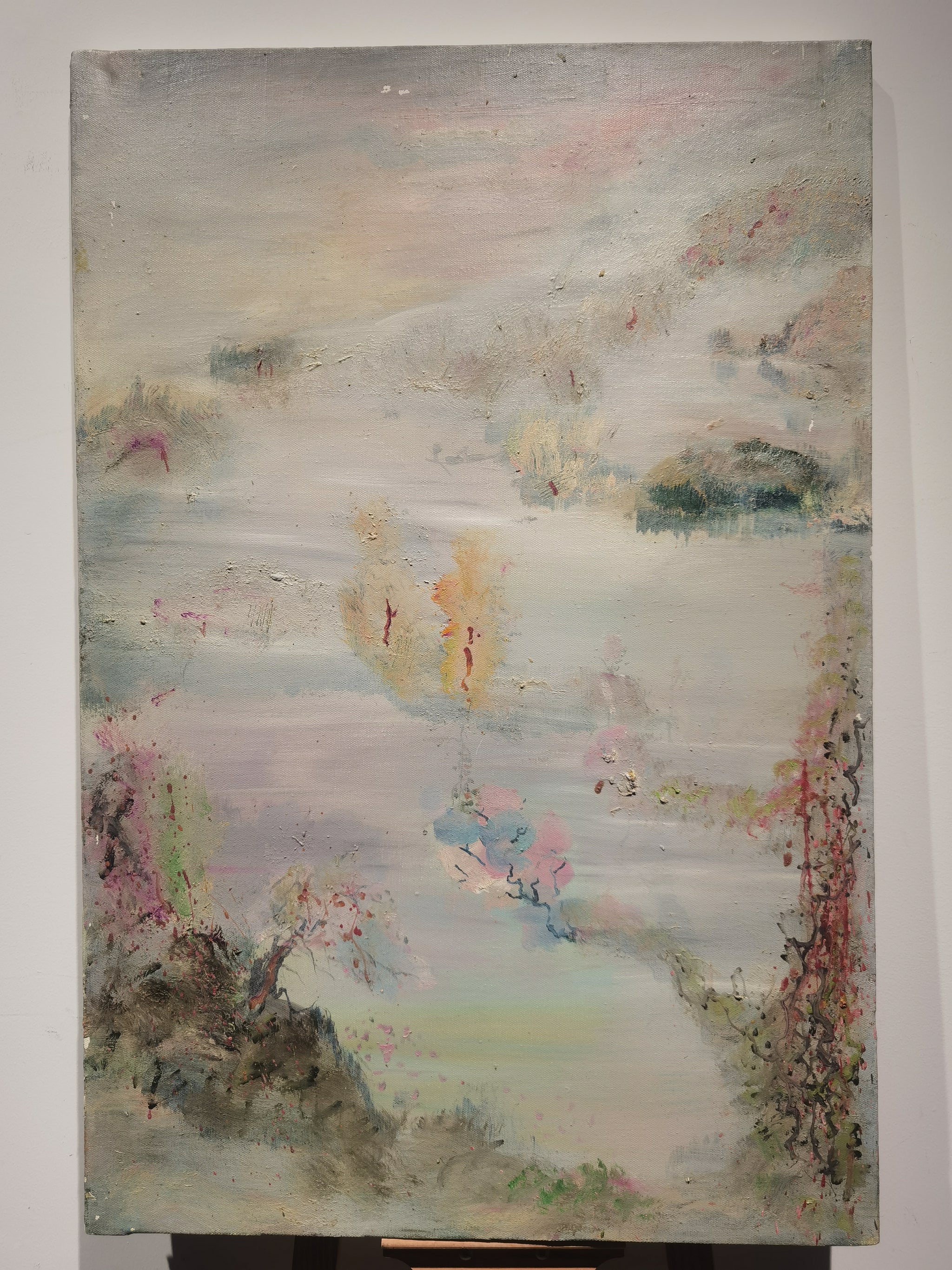 Executed in an abstract lyrical style, this work reflects elements of Chinese literati painting transposed through a contemporary lens. Li Yan employs modern oil techniques to channel traditional notions of poetic landscape, merging spiritual resonance with painterly experimentation. The result is both introspective and immersive.