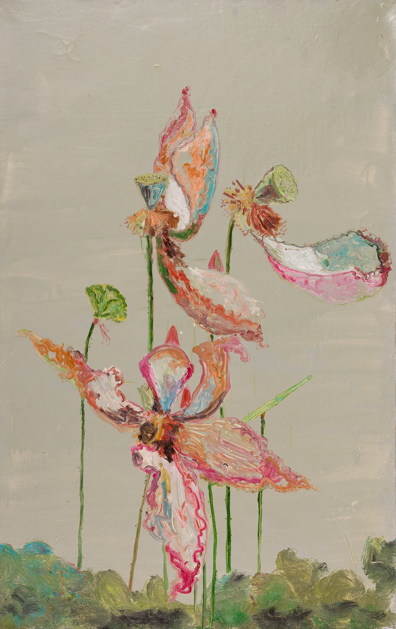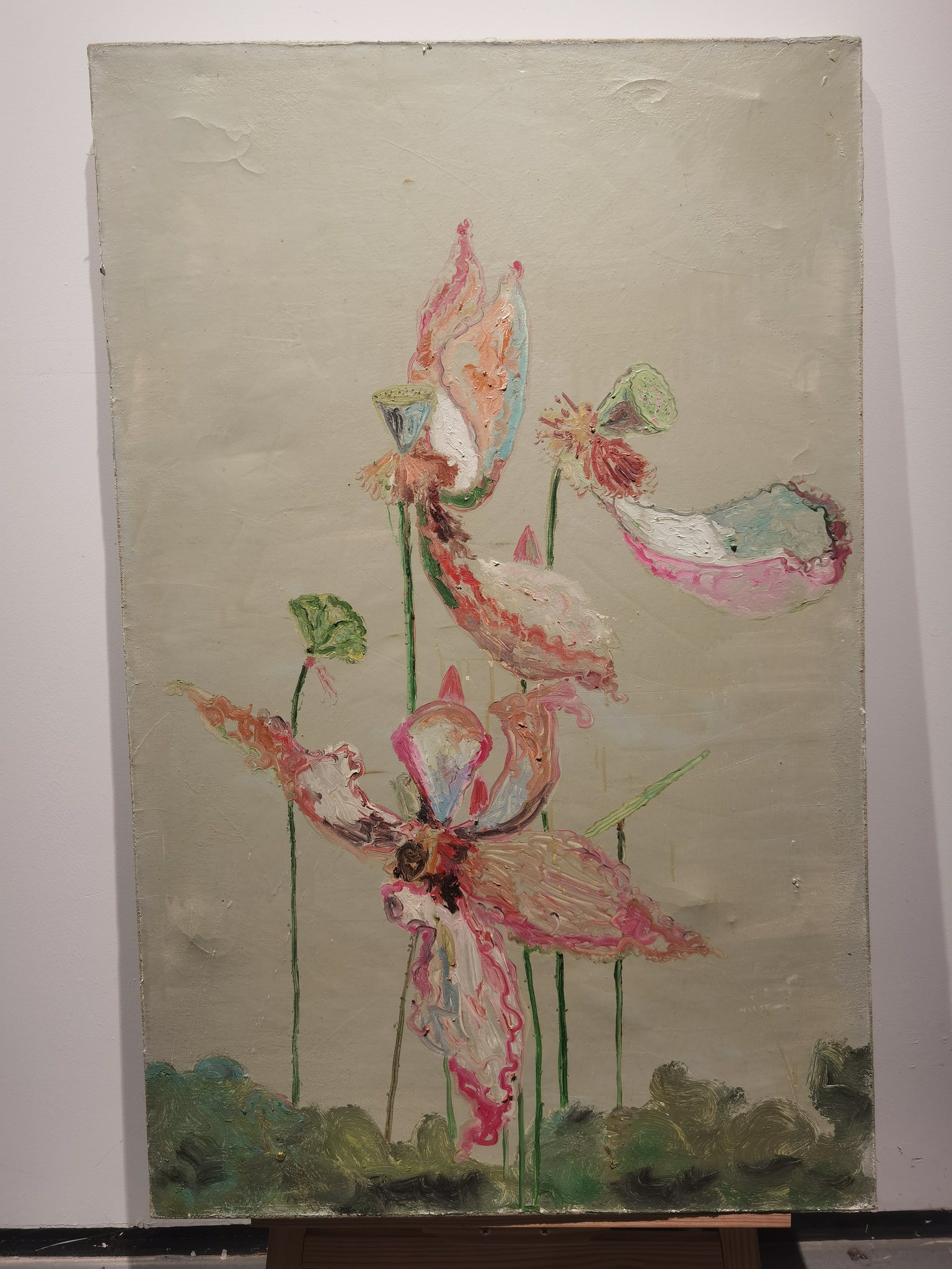 Lotus 2 deepens Li Yan’s visual exploration of organic life and philosophical symbolism. With its commanding vertical presence and rich textural interplay, the painting engages viewers in a meditative encounter with nature’s duality—resilience and decline, beauty and fragility.