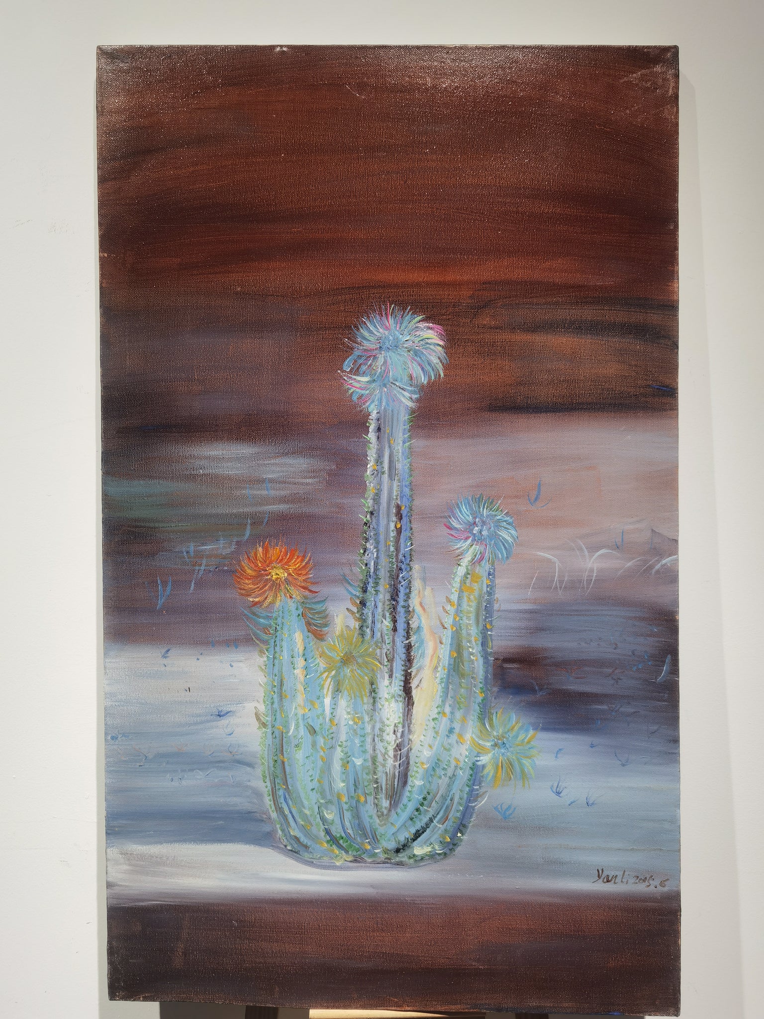 Painted in 2015, Cactus belongs to a period in which Li Yan explored themes of resilience and adaptation in nature. Cacti, as desert plants capable of thriving in harsh conditions, serve as potent symbols of endurance—a theme that resonates with broader ecological and personal reflections in contemporary Chinese art.