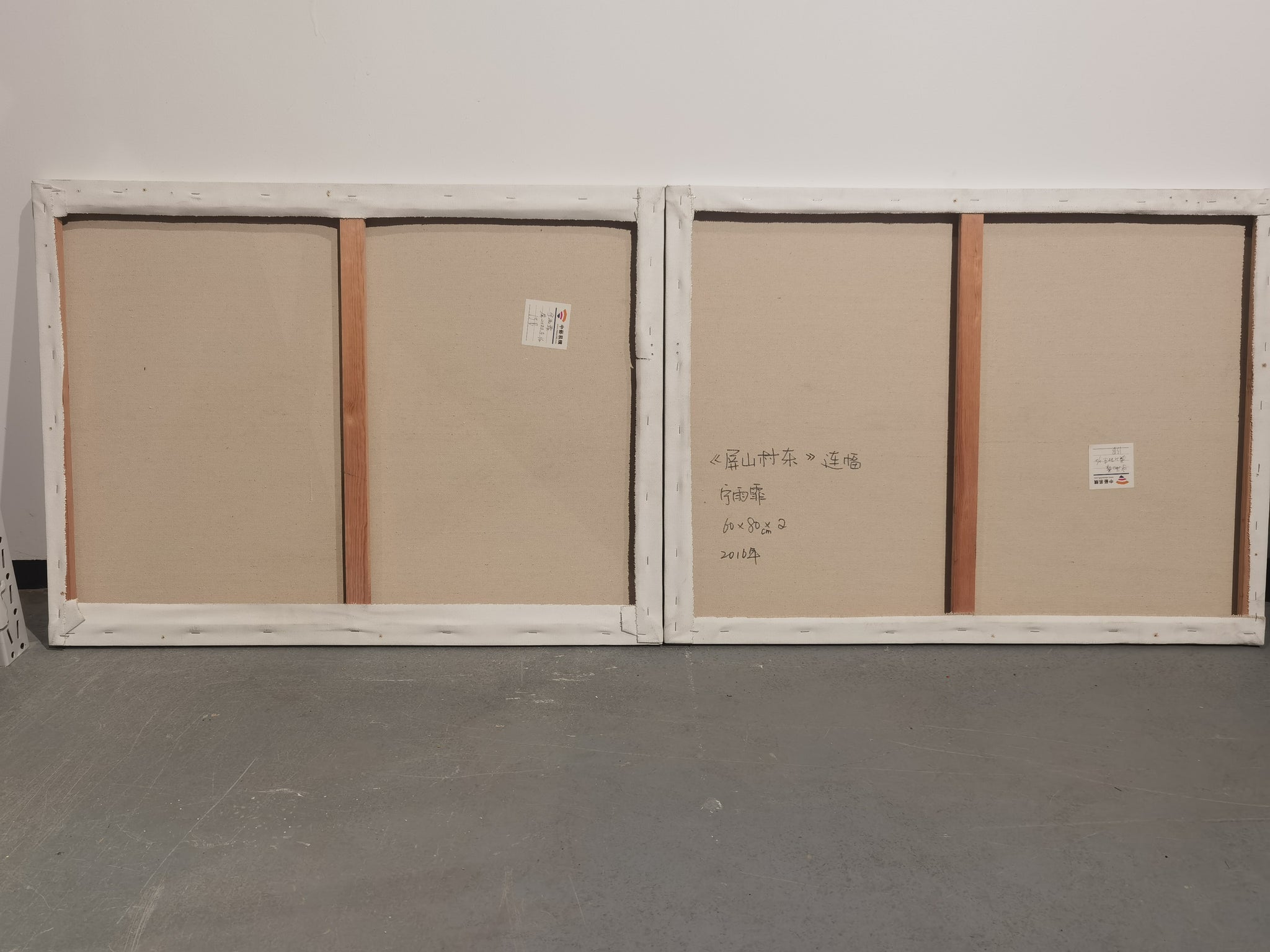 The diptych is in very good condition. Both canvases exhibit a clean surface with no visible signs of cracking, loss of pigment, or warping. The painting maintains excellent structural and aesthetic integrity, with no prior conservation treatments observed.