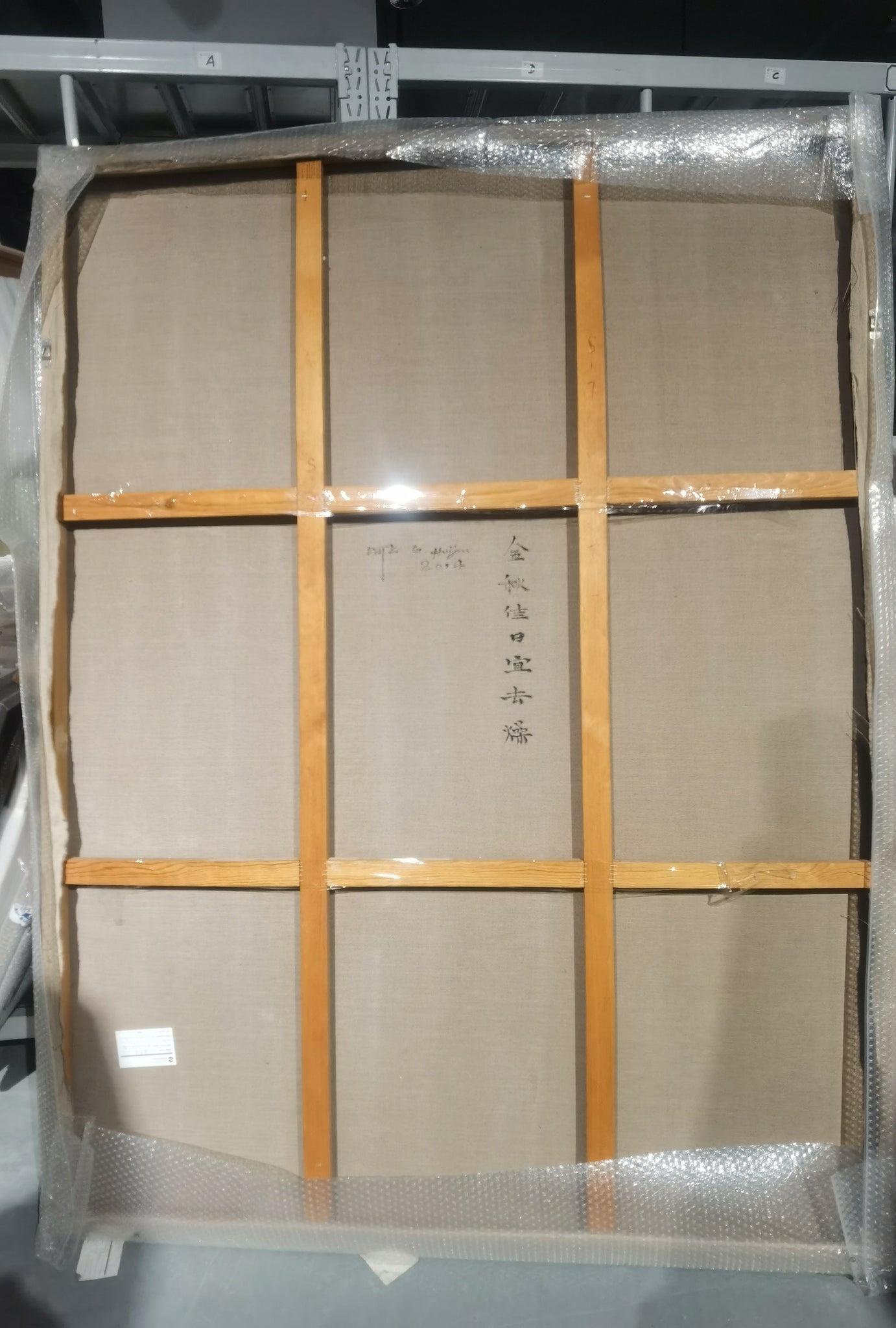 A Good Autumn Day to Dry is a richly atmospheric acrylic painting by contemporary artist Huijun Gao. The large-format canvas conjures the quiet rhythms of daily rural life, likely depicting scenes of laundry or harvest materials drying under crisp seasonal light. The Title: evokes a moment of clarity and utility in nature’s cycle.