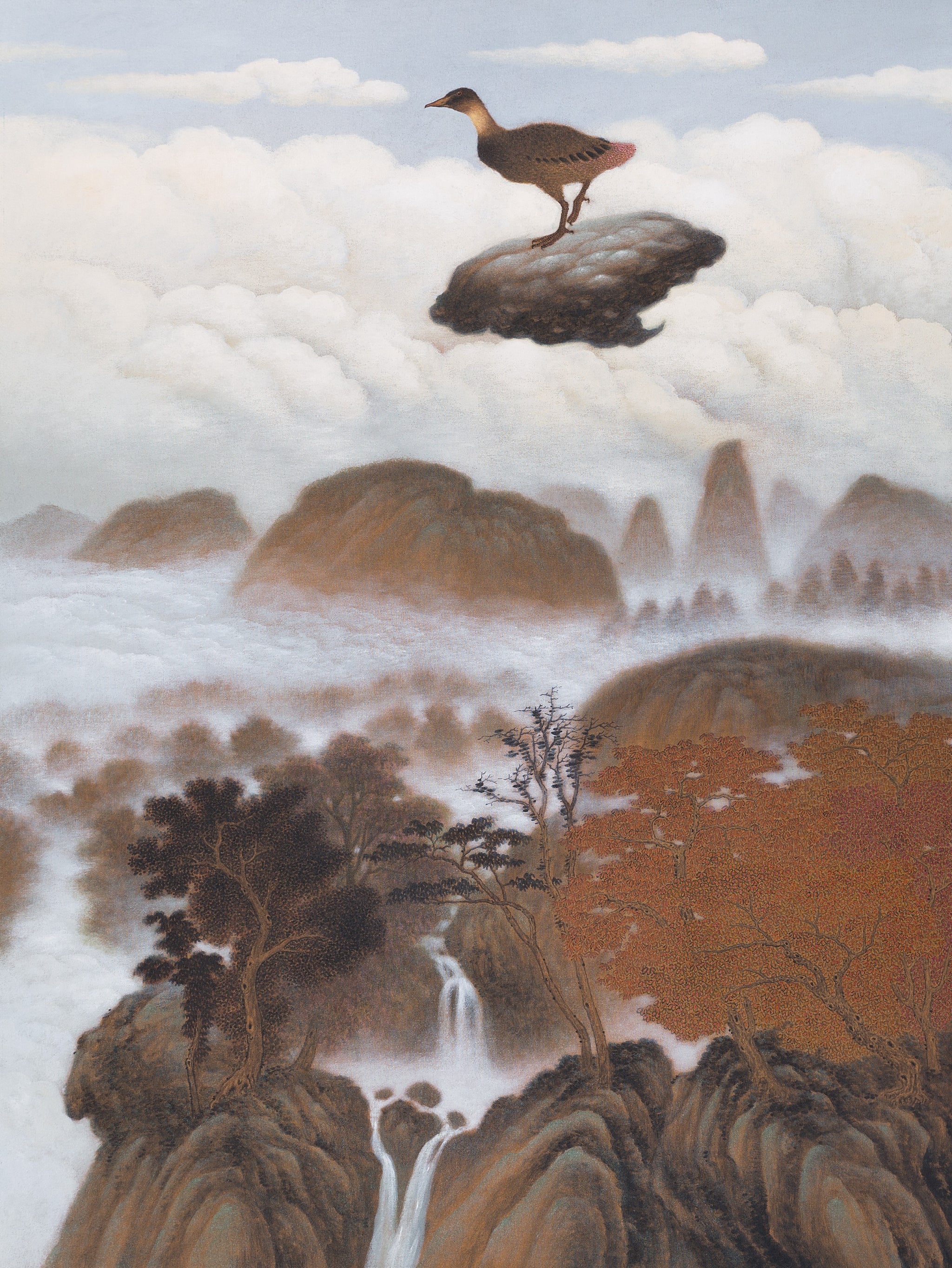 Huijun Gao’s work is rooted in lyrical realism, often combining soft brushwork, muted color palettes, and everyday subjects to express poetic reflection. In this piece, the warm autumnal tones and subtle layering of texture capture a serene but lived-in environment. Gao’s style reflects both traditional Chinese painting sensibilities and contemporary landscape composition.