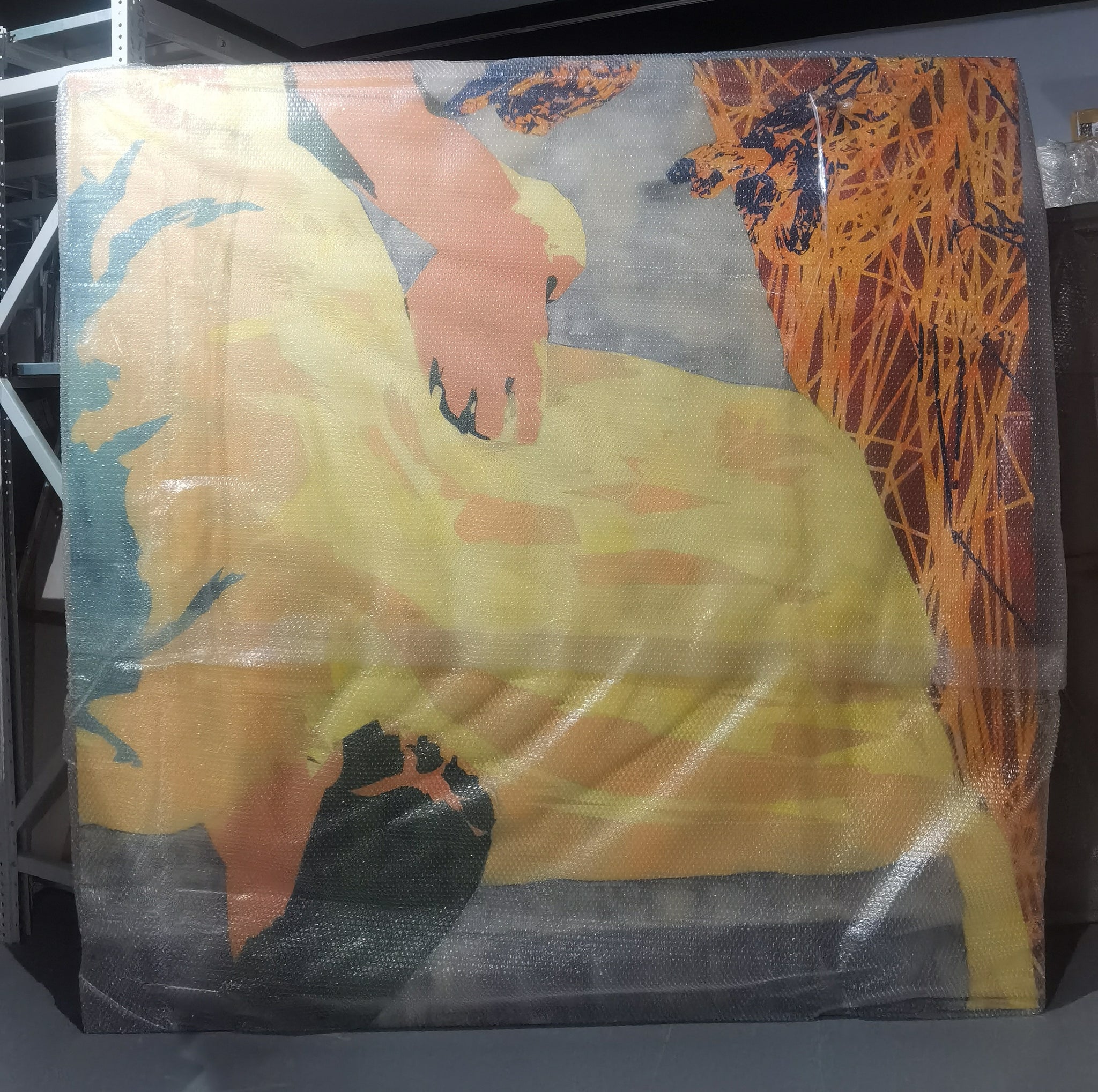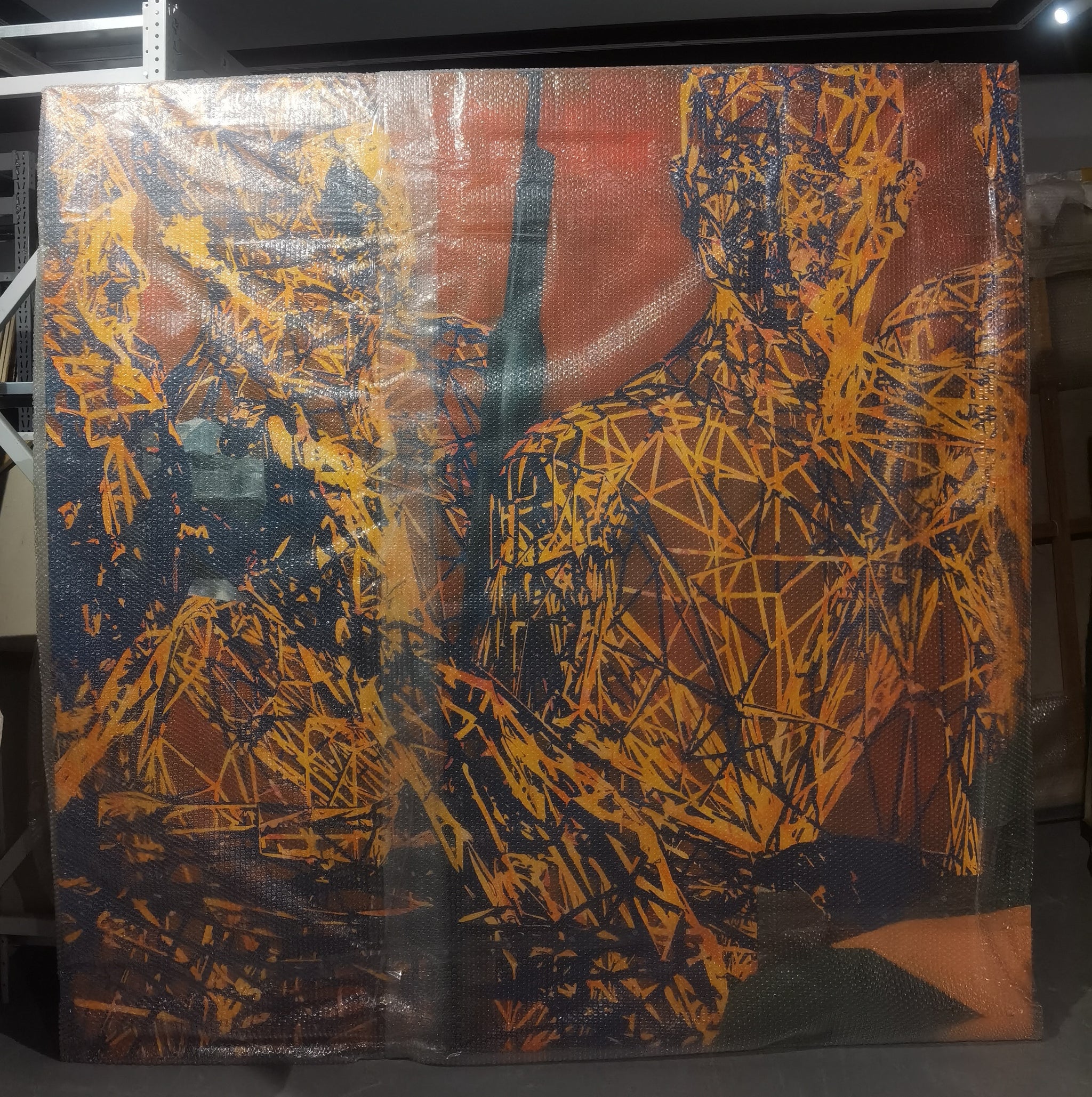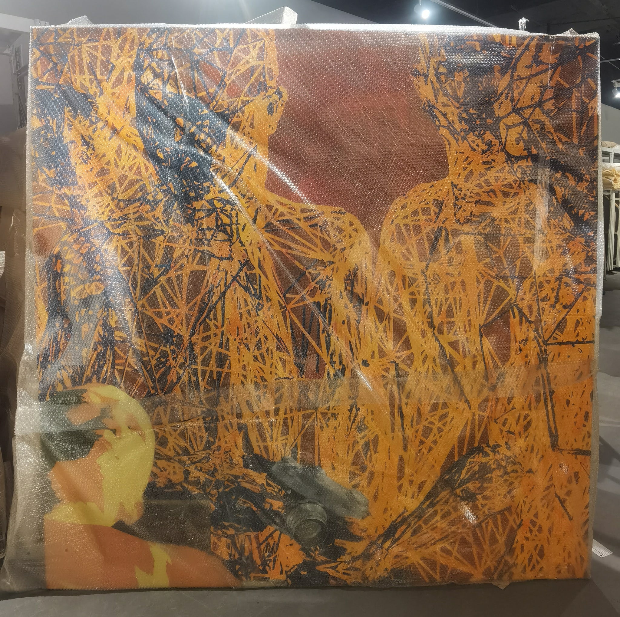 The painting is in excellent condition, with a well-preserved acrylic surface showing no signs of damage or restoration. Given the large format, careful handling and controlled environmental conditions are advised for continued preservation.