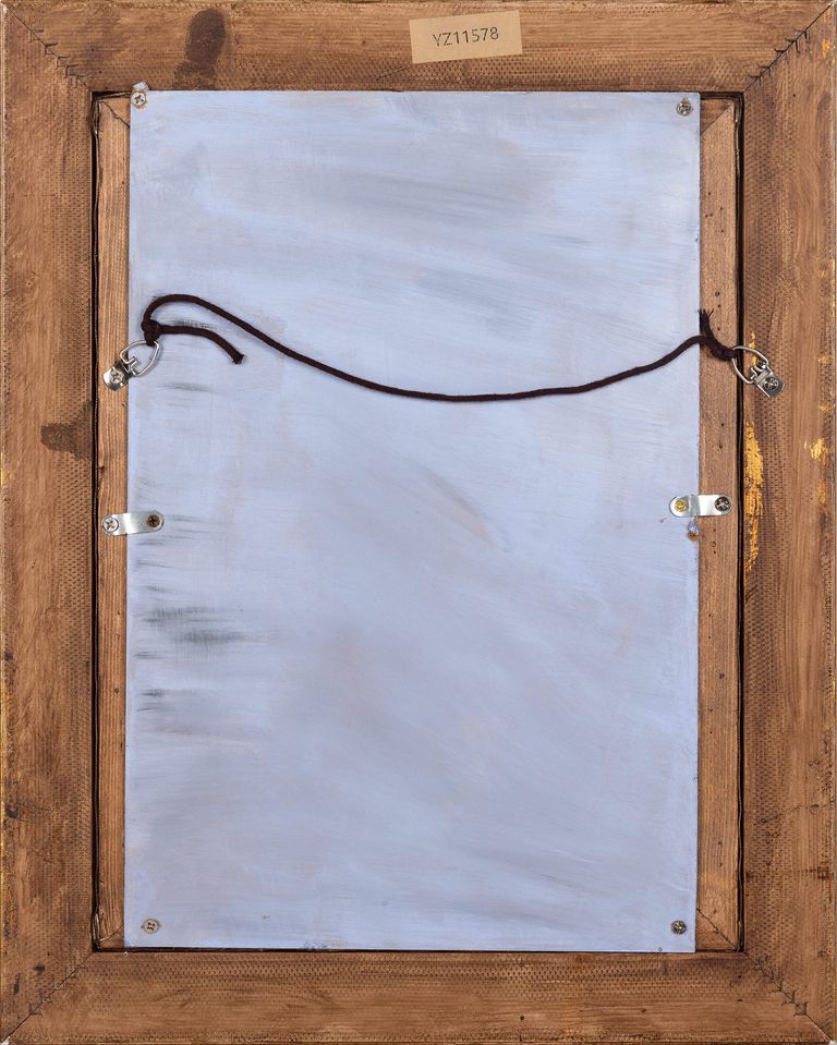 Condition Report: Good condition with no visible damage. The canvas shows repair marks along the edge of the stretcher.