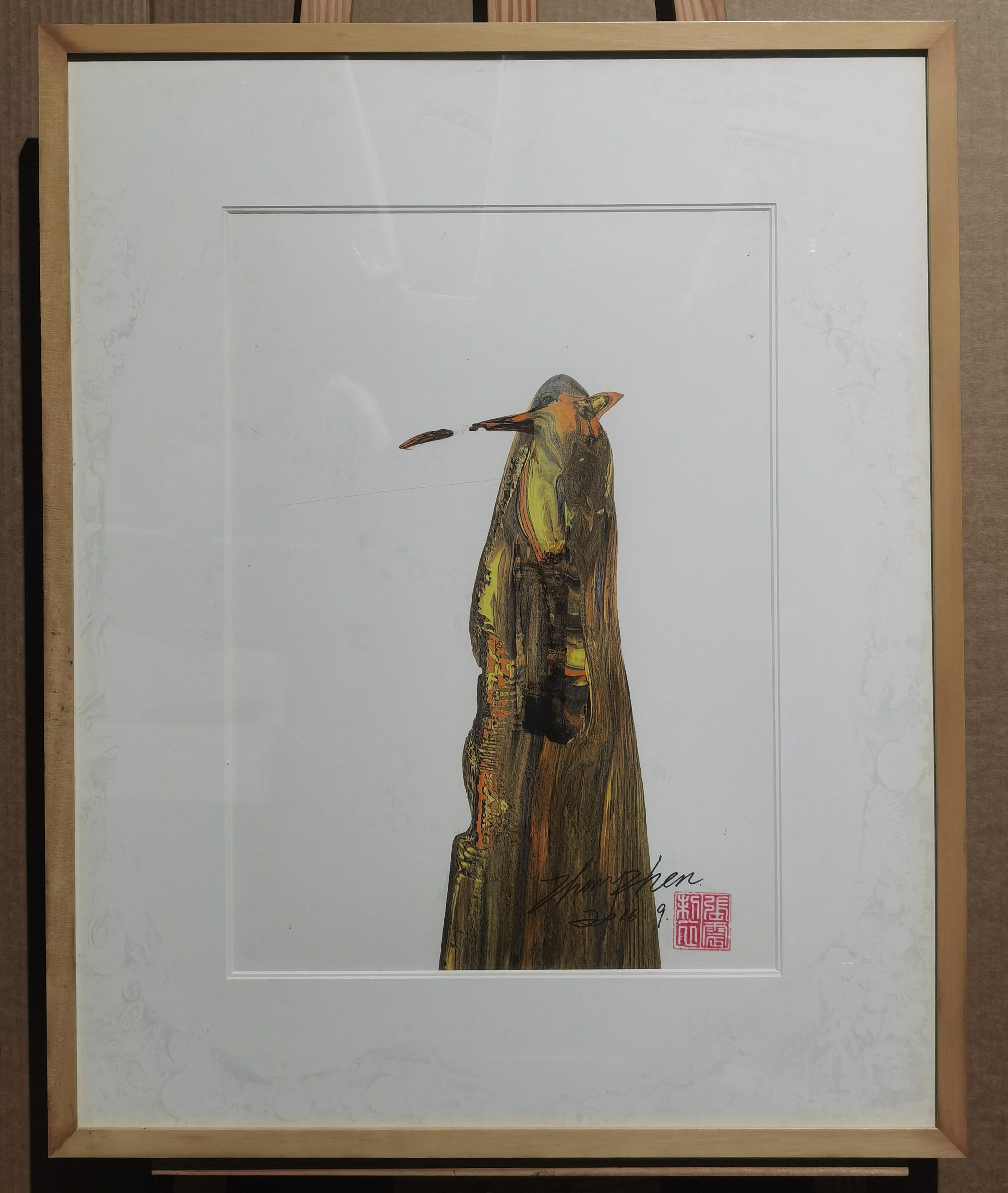 The work is in very good condition. The acrylic surface is stable, with no warping, foxing, or discoloration to the paper. The signature and red seal appear intact and vibrant. It is suitable for archival framing and conservation-grade presentation.