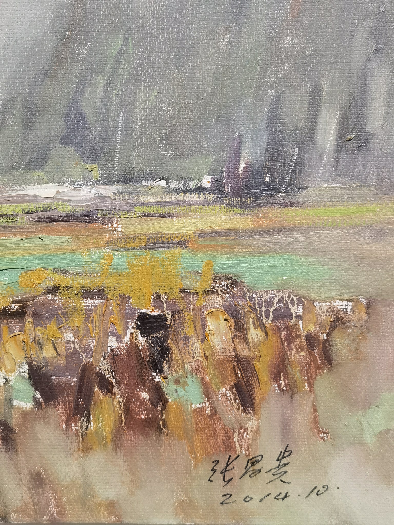 Rice Fragrance stands as a poignant reflection on the rural landscape in transition, demonstrating Zhang’s mastery of Impressionist technique infused with contemporary awareness. The piece will appeal to collectors invested in works that bridge tradition and modernity within Chinese art.