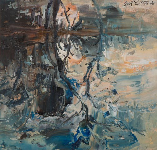 Produced in 2005, this work belongs to a period when Chinese contemporary artists were deeply engaged in merging Western modernist techniques with Eastern philosophies of nature. Chen’s interpretation of an impressionistic riverscape reflects this dialogue, emphasizing temporal beauty and natural serenity within a globalized visual language.