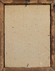Condition: This painting is in good condition, bearing signs of age including yellowing, some chipping on the top part of the frame, and staining on the back due to yellow paper residue.