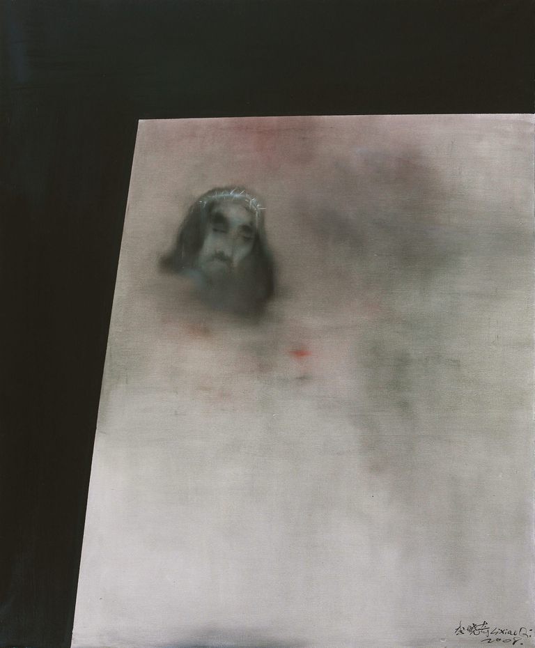 Born in Shandong in 1983, Li Xiaoqi graduated from the Sichuan Academy of Fine Arts in 2005 and currently lives and works in Chongqing. His works frequently depict indistinct, dreamlike figures, dissolving the lines between presence and absence. With a restrained palette dominated by deep blacks, grays, and occasional blood-like reds, his paintings exude an atmosphere of solitude and existential reflection. Li's expressive visual language employs fragmented forms, distortions, and dynamic compositions, creating an intense rhythm that oscillates between observation and experience. His work transcends traditional representation, offering a deeply personal meditation on human fragility, suffering, and spiritual transcendence.