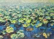 "Summer Lotus Pond" by Wei Luning is a captivating oil painting that beautifully captures the essence of a tranquil lotus pond in full bloom. The artist masterfully blends soft, natural hues to create a serene and harmonious composition, evoking the peaceful beauty of summer. The interplay of light and shadow on the water’s surface enhances the depth and vibrancy of the painting, immersing the viewer in the calmness of nature. The lotus flowers, a symbol of purity and enlightenment, add a poetic touch to the scene, making it a perfect piece for contemplation and relaxation.