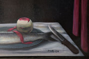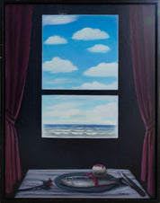 A Certain Day is a compelling oil on canvas by Jin Guangri, measuring 140 by 87 cm. This work encapsulates Jin’s distinctive approach to surrealist narrative, employing evocative symbolism and dreamlike imagery that transcend conventional representation. The painting combines ordinary elements from daily life with surrealist aesthetics, inviting viewers into a contemplative visual dialogue.