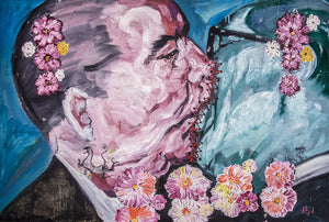 In Hulk, Red Giant, Zhan Yang reconfigures a historic image into a provocative allegory of power, mutation, and political intimacy. The painting reinterprets the infamous Cold War-era kiss between Brezhnev and Honecker, transforming the embrace into a grotesque fusion of stitched flesh and floral eruptions. Rendered with aggressive brushwork and visceral textures, the image oscillates between seduction and violence—suggesting an unsettling entanglement of ideology and identity.
