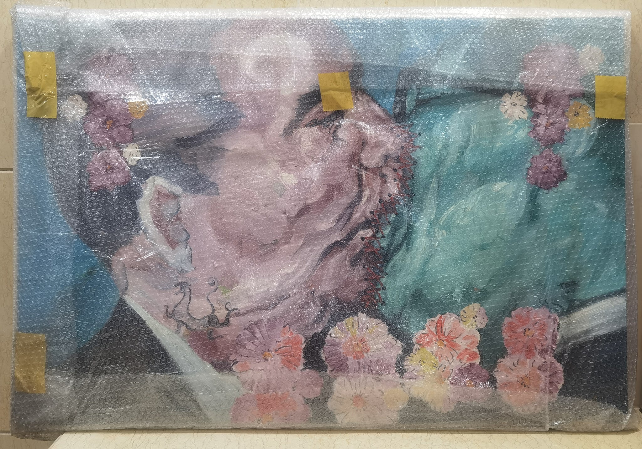 Zhan Yang's approach blends elements of Neo-Expressionism with satirical pop surrealism. The exaggerated anatomies, tactile surface, and clashing imagery reflect both an affinity with post-Soviet absurdism and the aesthetic shock strategies of Chinese Cynical Realism. Floral motifs erupting from wounds evoke a dual symbolism—beauty born of trauma and decay masked by ornamentation. The work is simultaneously autobiographical, historical, and mythopoetic in tone.