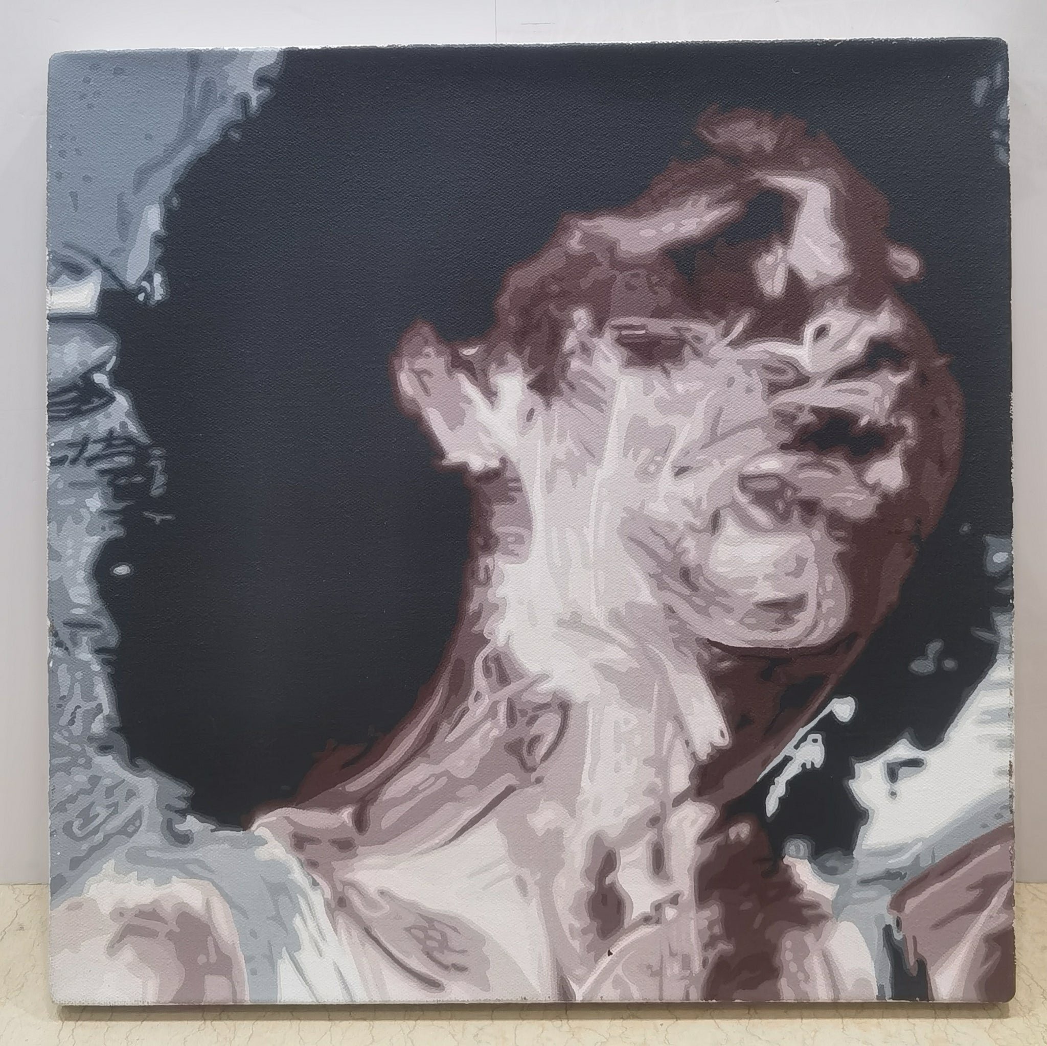 Guo Wei's work fuses photo-based realism with expressive abstraction. This painting is characteristic of his experimental layering technique, where closely contoured tonal zones replace traditional brushwork. The distorted and disoriented portrait reflects influences from both Western contemporary figurative painting and post-socialist Chinese art. Guo’s portraits often become psychological landscapes, communicating tension, vulnerability, and unresolved inner states.