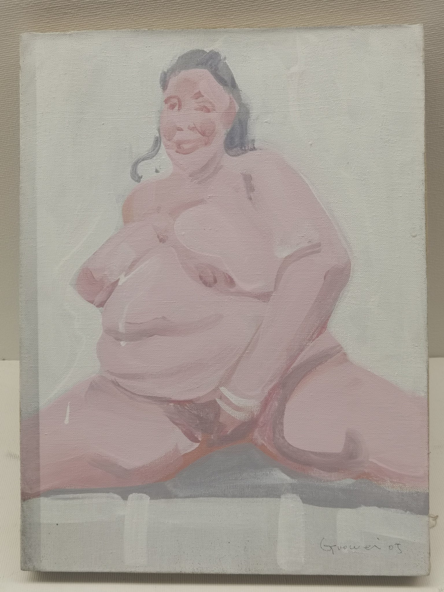 Painted in 2005, this work is part of a period in which Guo Wei was actively exploring themes of identity and representation through the nude figure. His interest in rendering emotional and physical truth reflects broader trends in Chinese contemporary art that critique media portrayals of the body and challenge societal norms.