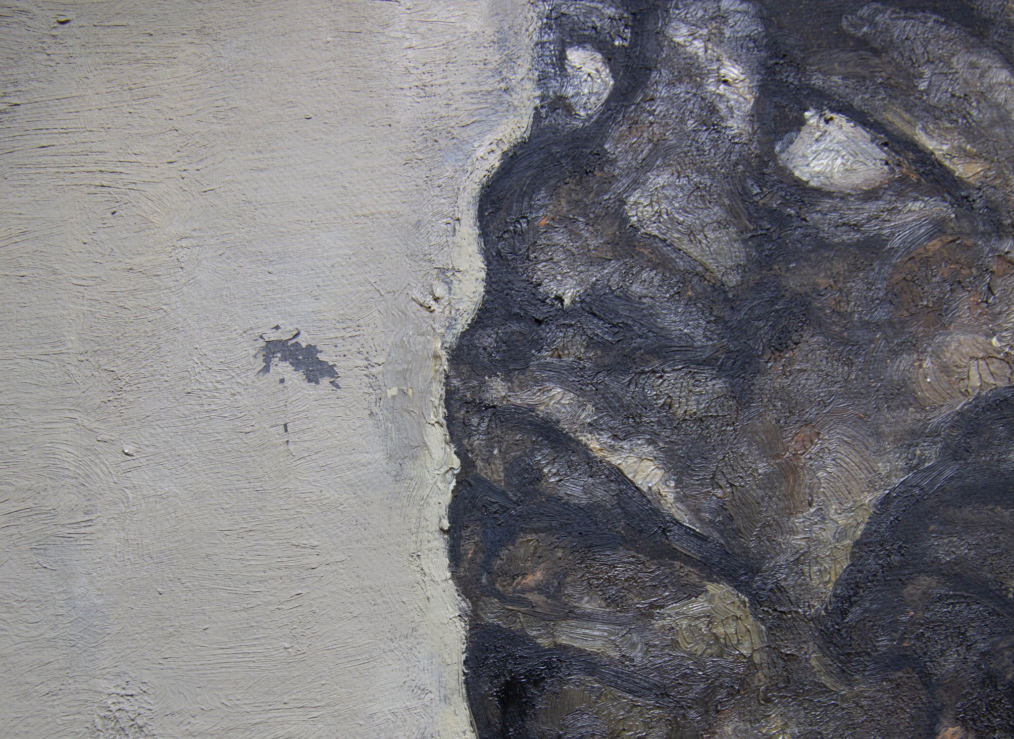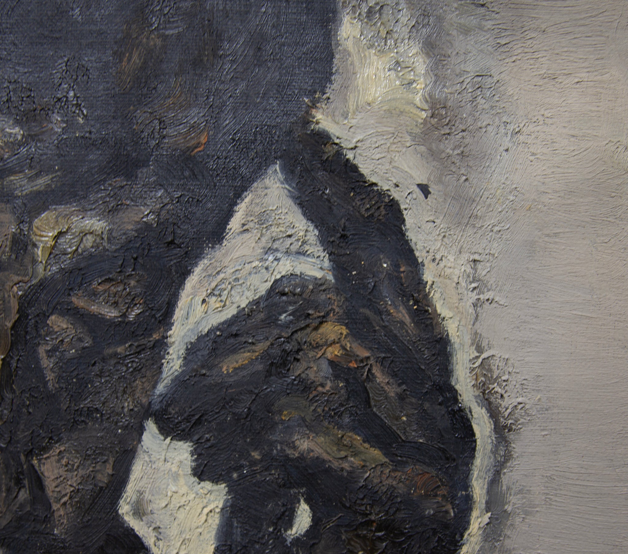 The painting is in excellent condition overall, only showing minor, almost unnoticeable flaking in two small areas. The surface is stable with no visible signs of cracking, overpainting, or restoration. No conservation work is currently required.