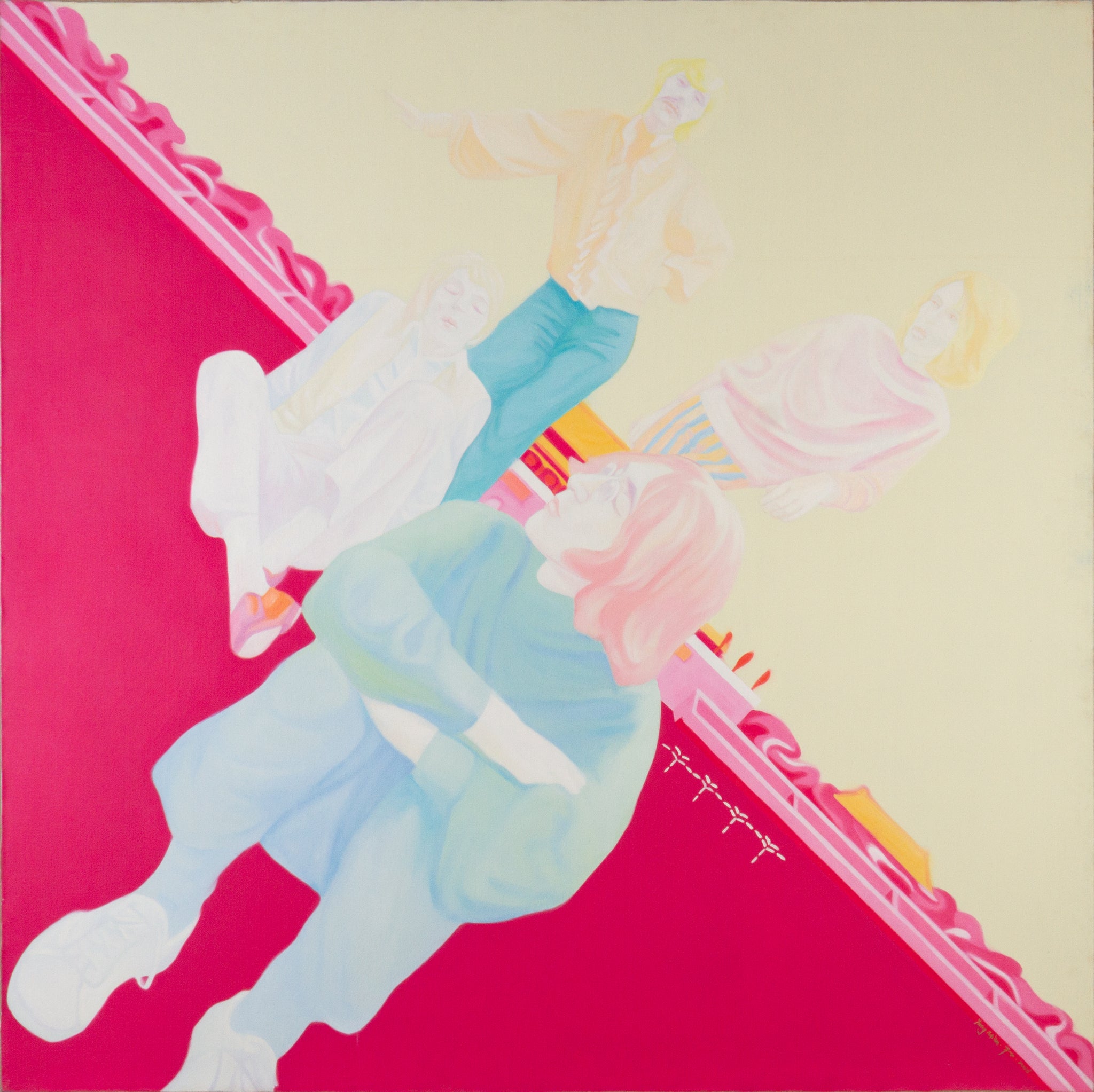 Rendered in pastel hues and smooth surfaces that recall airbrushed advertising, Yang Mian’s style merges photorealistic softness with the flattened iconography of commercial imagery. His figures are idealized and dislocated—both familiar and abstract. The composition, with its tilted plane and surreal chromatic palette, subtly recalls the psychedelic visual vocabulary of 1960s pop culture. Notably, the arrangement and appearance of the figures strongly suggest an homage to the Beatles, with their distinctive poses, hairstyles, and clothing resembling the Fab Four during their mid-to-late career period. This alignment situates Mian’s work in dialogue with Pop Art and global media aesthetics.