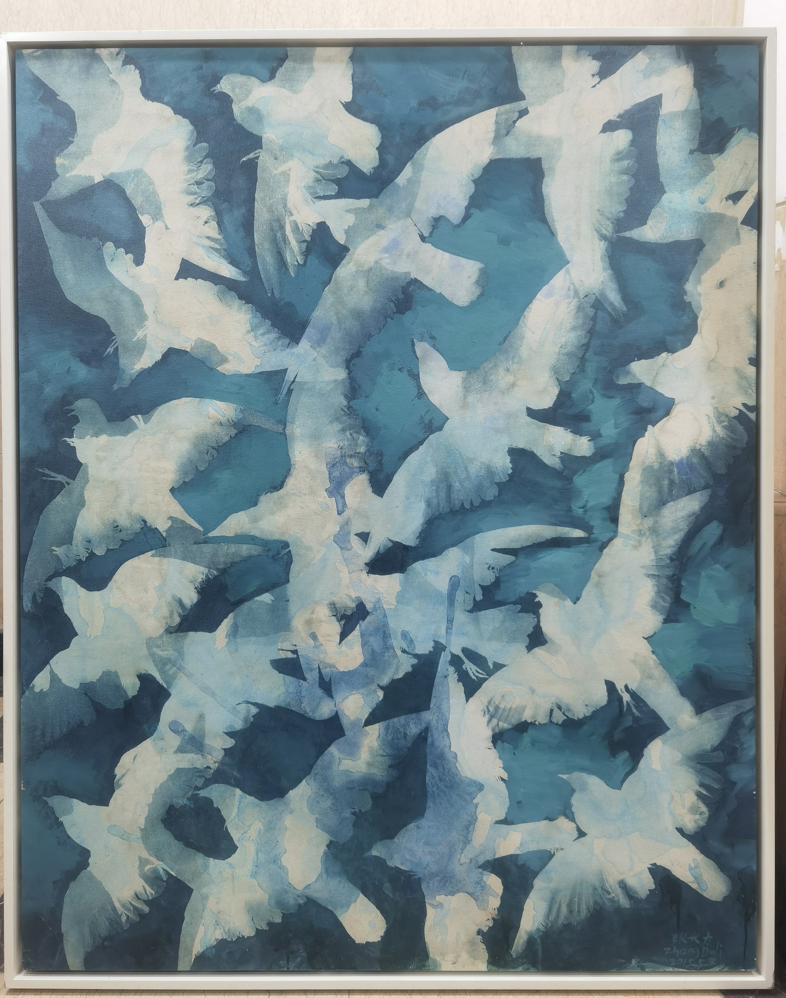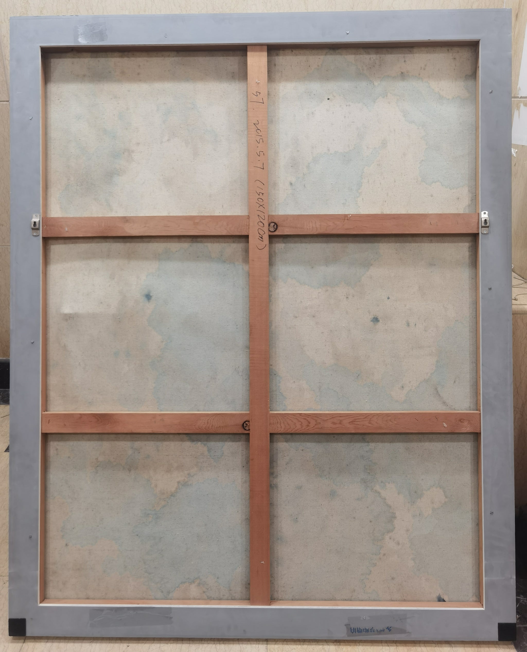 The painting is presented framed and in excellent condition, with a stable surface and vibrant coloration. There are no visible signs of restoration or damage. The frame is solid and complements the work’s scale and presentation.