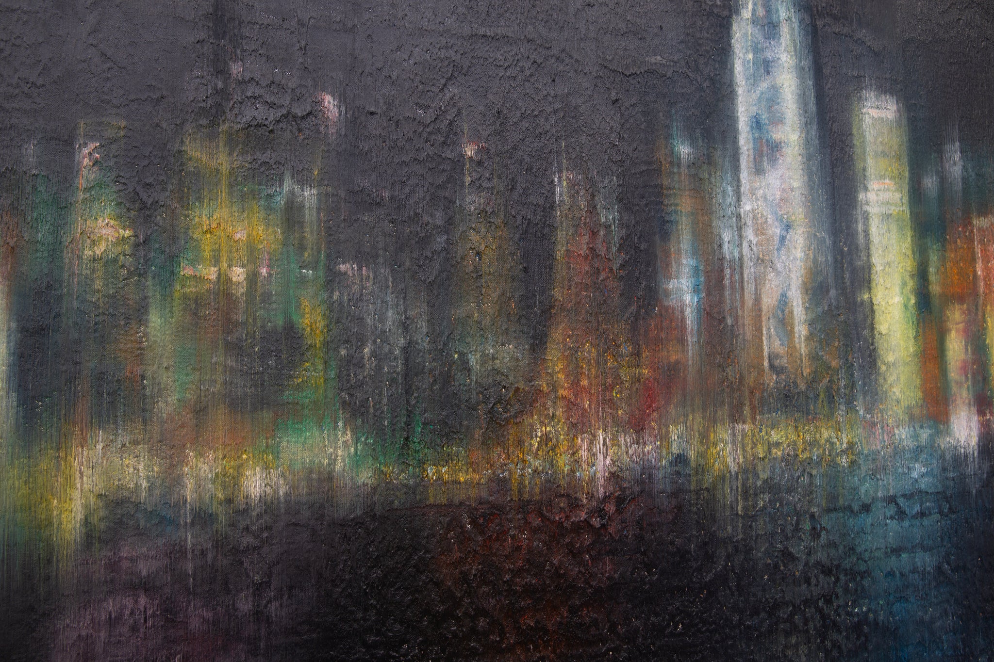 Yin Zhaoyang, born 1970 in Henan and trained in printmaking at the Central Academy of Fine Arts, is a key figure in the “Youth Cruelty” generation of the 1990s, later shifting toward spiritual and abstract landscape imagery. In Maze, he synthesizes Eastern literati tradition with Western abstract expressionism—applying pigment directly on canvas and manipulating it with palette knives to build sculptural, undulating textures. The result is a cityscape that feels both physical and metaphysical—realistic yet deeply emotive.