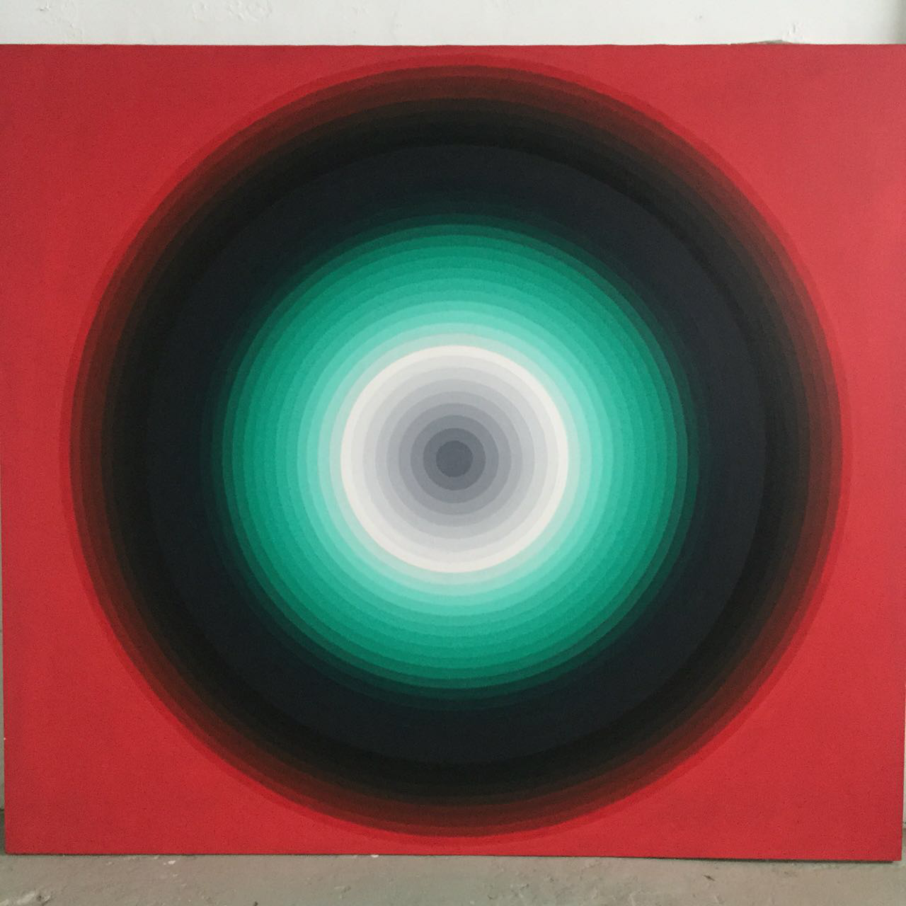 Color Wheel 02 distinguishes itself through its chromatic intensity and dramatic compositional focus. The vivid interplay of teal, black, and red-orange creates a visual force field that draws the viewer into a slow, spiraling contemplation. It is a powerful example of Yan Lei’s ability to elevate systematic abstraction into the realm of the emotive and sublime. As collectors and curators continue to explore the convergence of global conceptualism and meditative formalism, works like Color Wheel 02 stand as compelling anchors in the discourse.