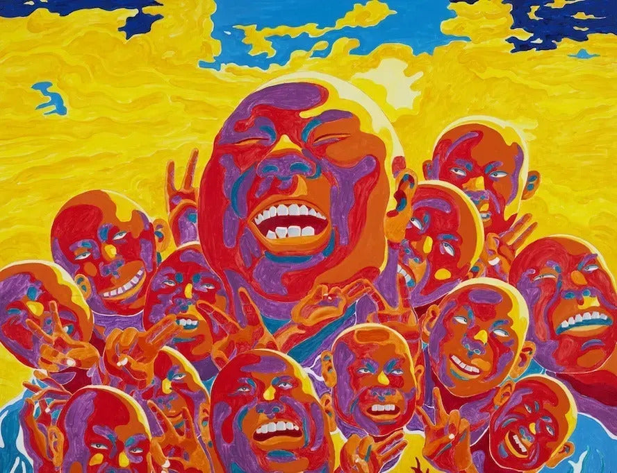 Fang Lijun is a prominent figure in the Cynical Realism movement, characterized by its satirical portrayal of societal issues and the use of exaggerated imagery. His works often depict bald-headed men with expressions of detachment or contemplation, symbolizing the disillusionment and existential concerns of China's post-Tiananmen generation. The use of bold colors and expressive brushwork in Early Summer of 2014 aligns with his established style, drawing influences from both traditional Chinese art and Western modernism.