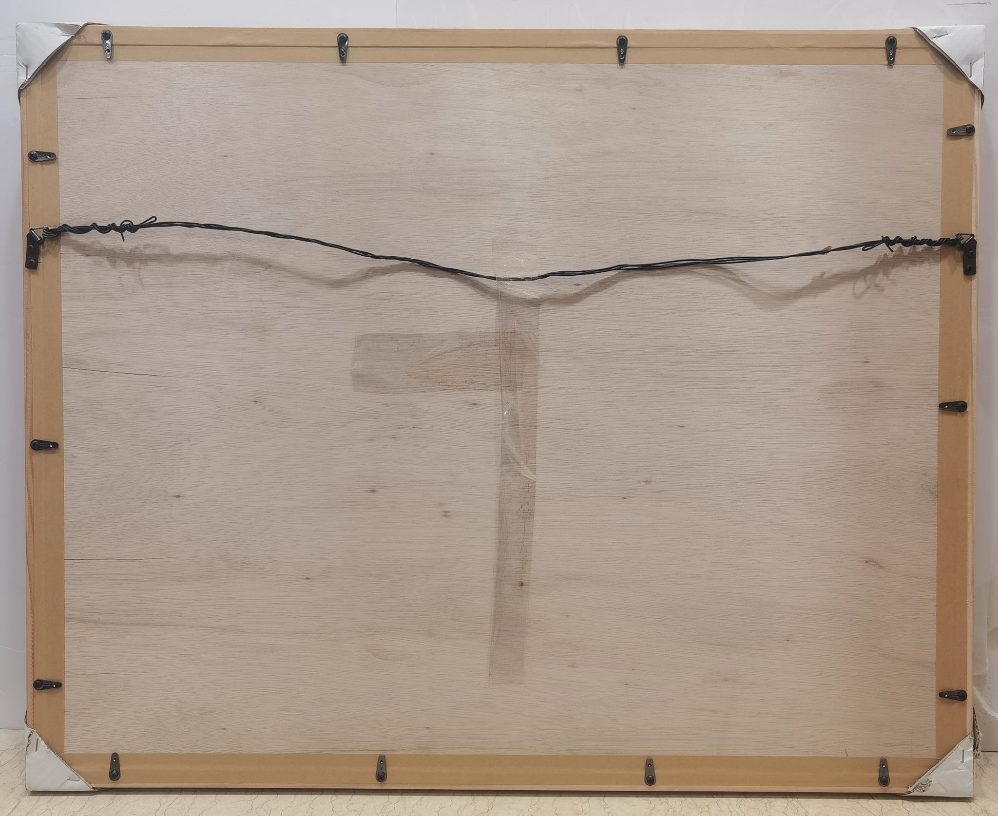 The print is in very good condition. Housed under protective glazing within a black matte frame, it shows no signs of fading, foxing, or surface distortion. Color saturation and line fidelity remain crisp and intact. The framing and corner protectors indicate recent professional handling and exhibition readiness.