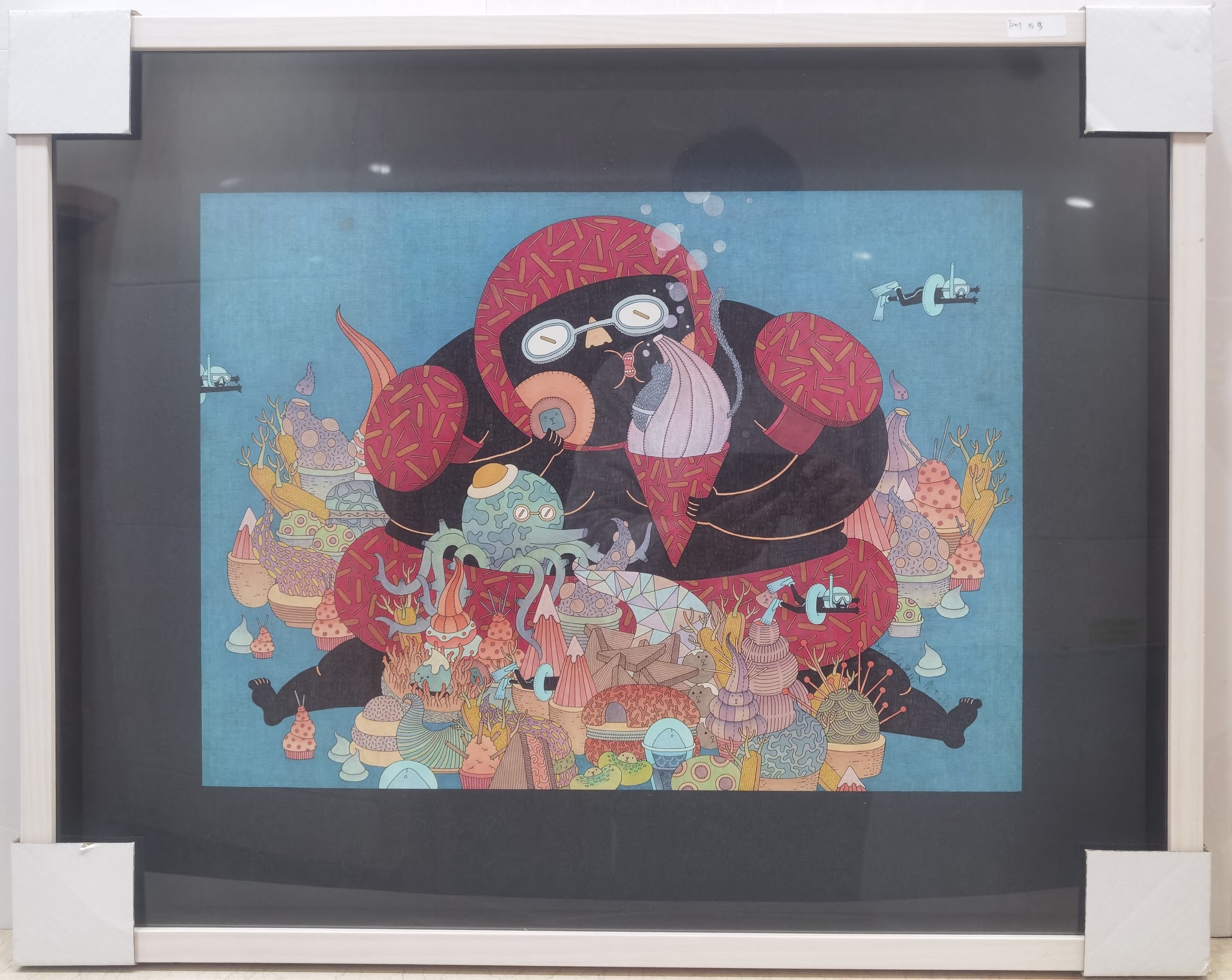 Created in 2015, Sweet Dreams arrives at a mature stage in the artists’ collaborative journey. By this time, they had been collected by national institutions and shown extensively across Asia. This work reflects their evolving interest in emotional states and subconscious realms, mapping psychological dreamscapes as imagined ecosystems. It also nods to contemporary environmental themes, inviting viewers to contemplate the fragility and fantasy of aquatic life.