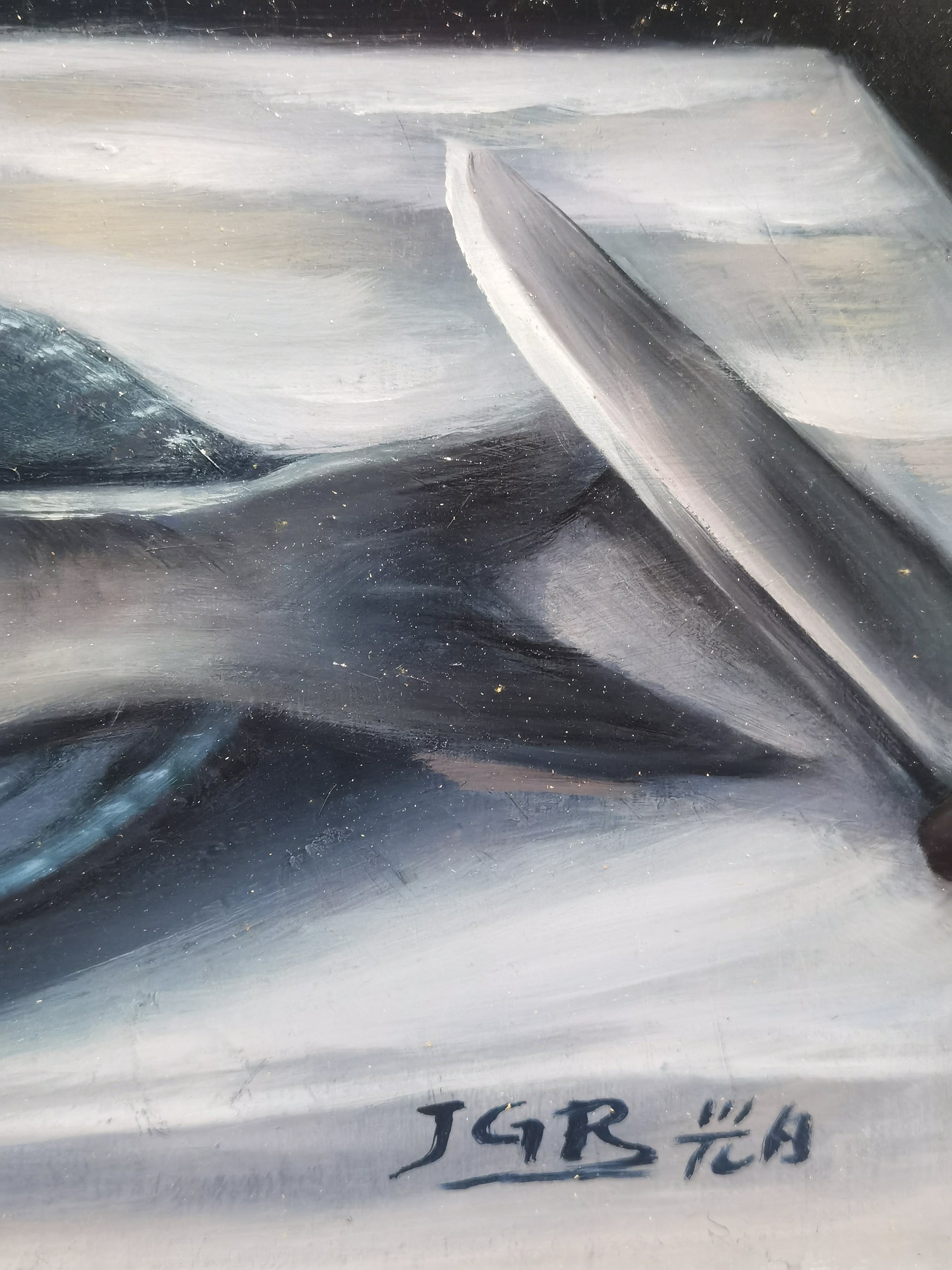 A Certain Day is a narrative oil painting jointly created by Long He and Guangri Jin, measuring 140 × 87 cm. The composition presents a serene interior scene: a sunlit table bearing a solitary fish—perhaps freshly prepared for lunch—sits in quiet dialogue with a wide-open window that frames a tranquil view of the beach and sea beyond. The interplay between still life and landscape imbues the canvas with a reflective, lived-in atmosphere, suggesting a fleeting yet intimate moment suspended in time.