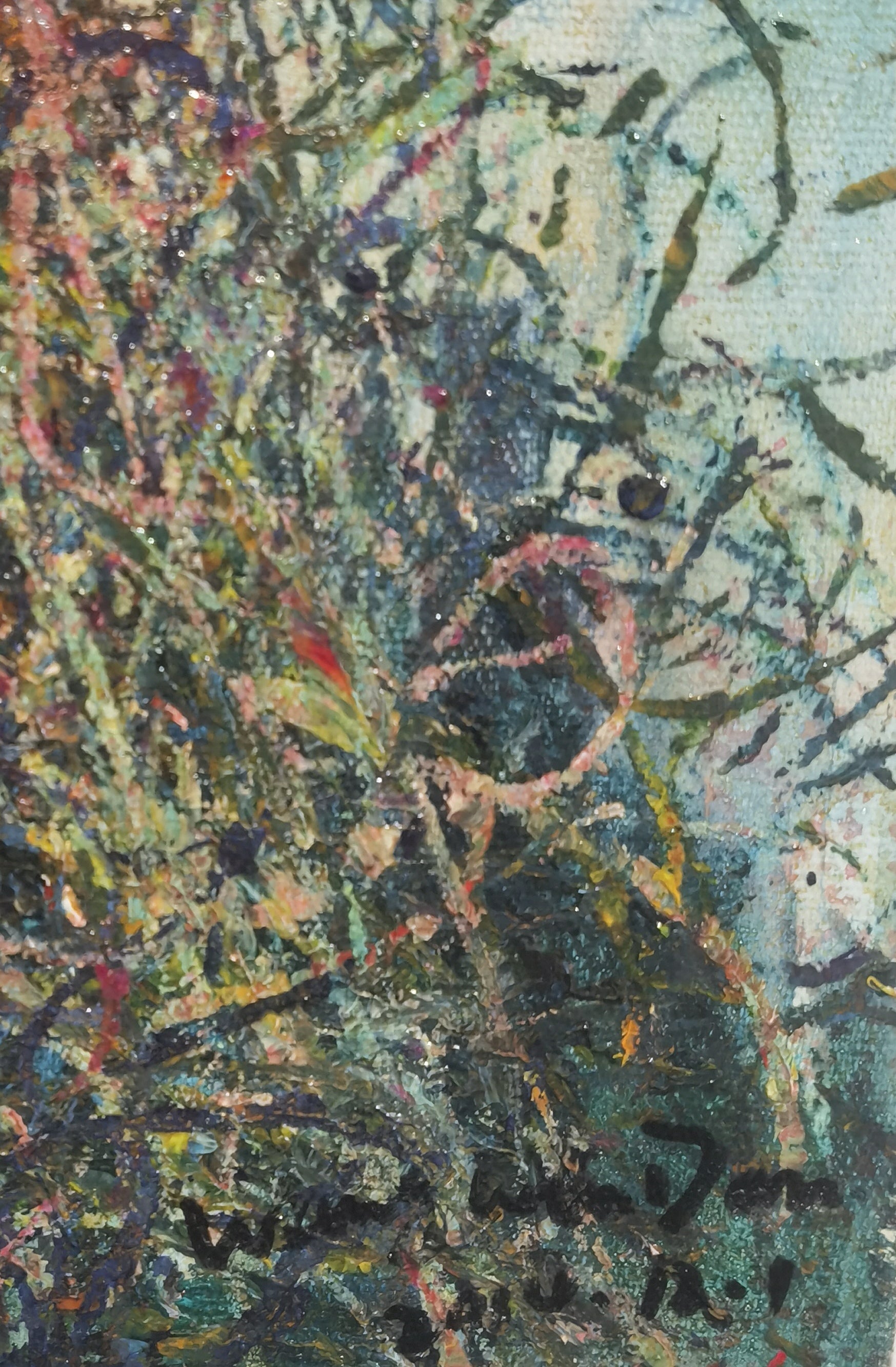 Wang's work leans toward lyrical abstraction, with visual echoes of Post-Impressionism and the abstract gesturalism of the 20th century. His energetic brushwork recalls the linear exuberance of Cy Twombly and the textural sensitivity of Joan Mitchell, while retaining a uniquely atmospheric softness. The organic quality of the tangled forms and chromatic complexity suggest an intuitive process driven by both memory and sensation.