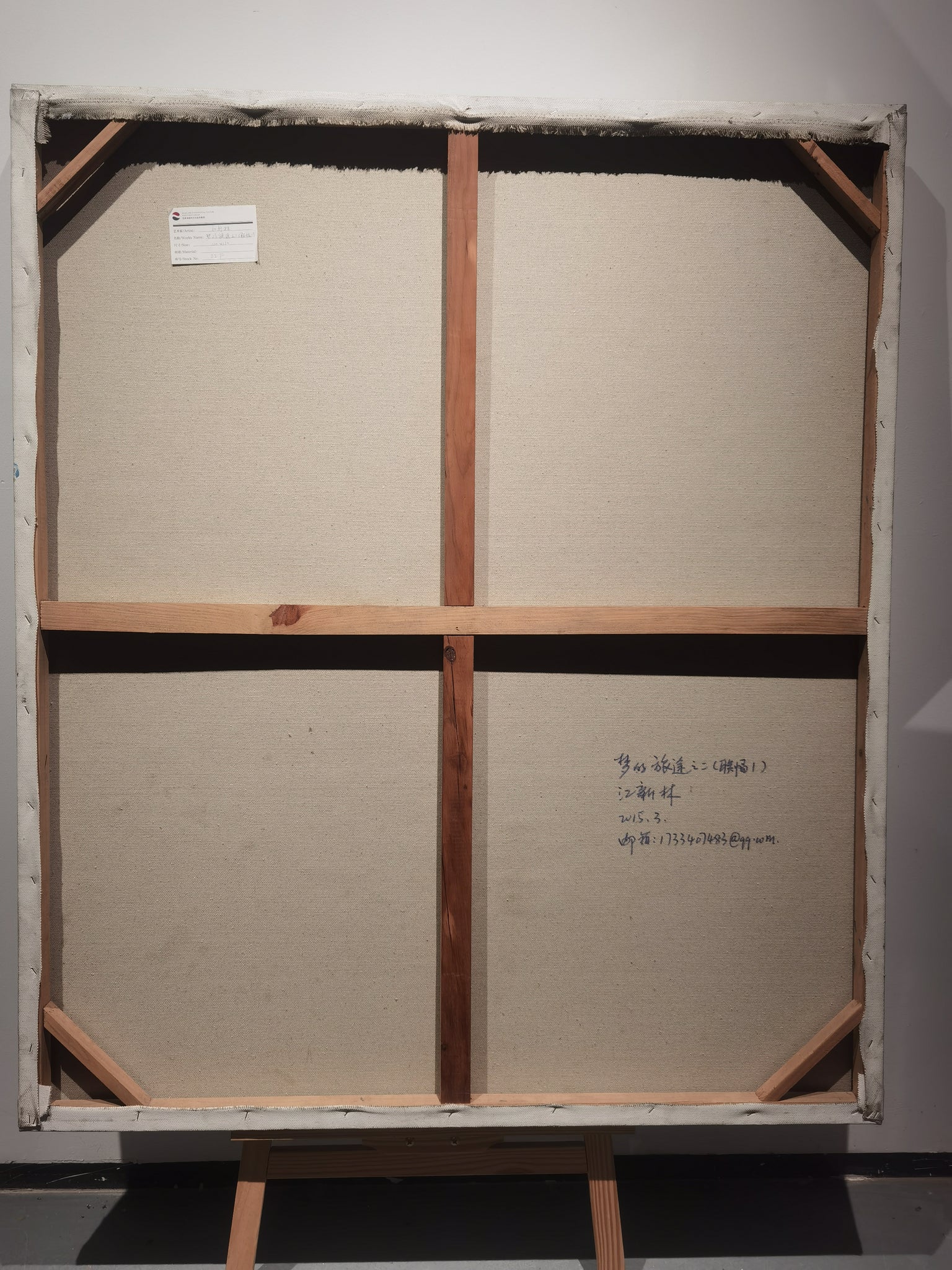 Painted in 2015, A Dream Journey Part 2 (Frame 1) belongs to a larger thematic exploration by Jiang focused on dream states, consciousness, and the stages of existence. The encased child figures might be read as metaphors for psychological or spiritual containment, gesturing toward rebirth, struggle, and the search for identity within complex societal and cosmic frameworks.